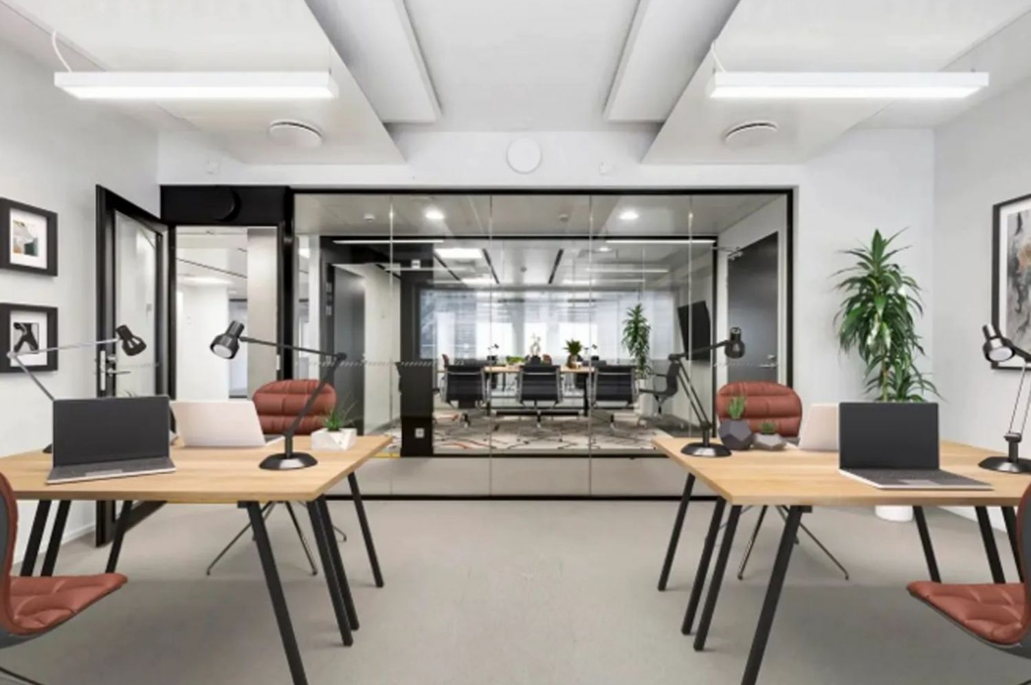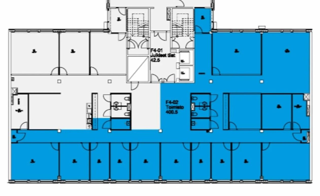 Moderni toimistotilaa Helsingin keskustasta. Tästä neljännen kerroksen toimistosta löytyy hyvin eri kokoisia työ- ja neuvotteluhuoneita sekä wc-tilat.