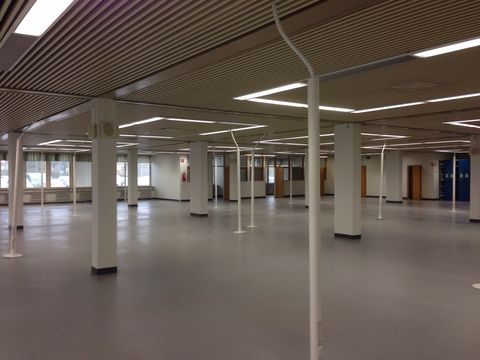 235 m² varastotila yhteisellä lastauslaiturilla. Ei omia sosiaalitiloja. Kuvat ovat yleiskuvia kiinteistön tiloista.