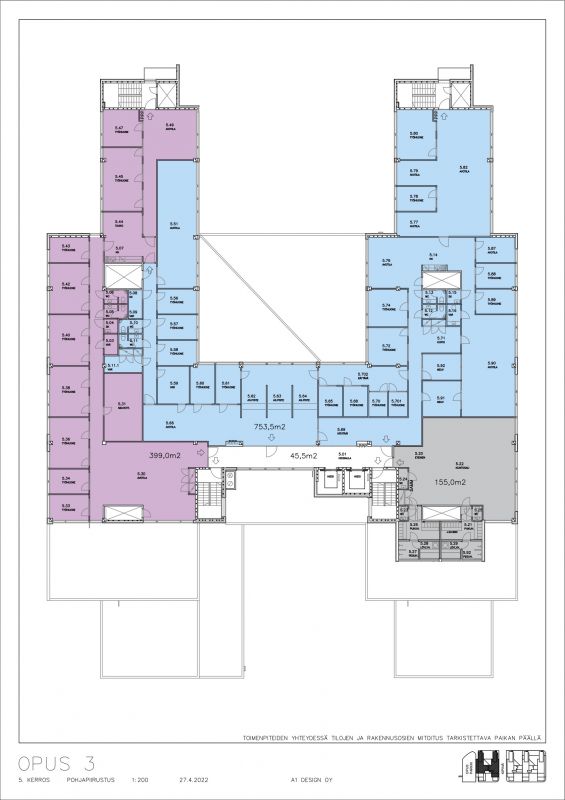 Nykyaikainen ja korkealaatuinen viidennen kerroksen 753,5 m² toimisto Opus 3-talosta, Herttoniemen Opus Business Parkista.
