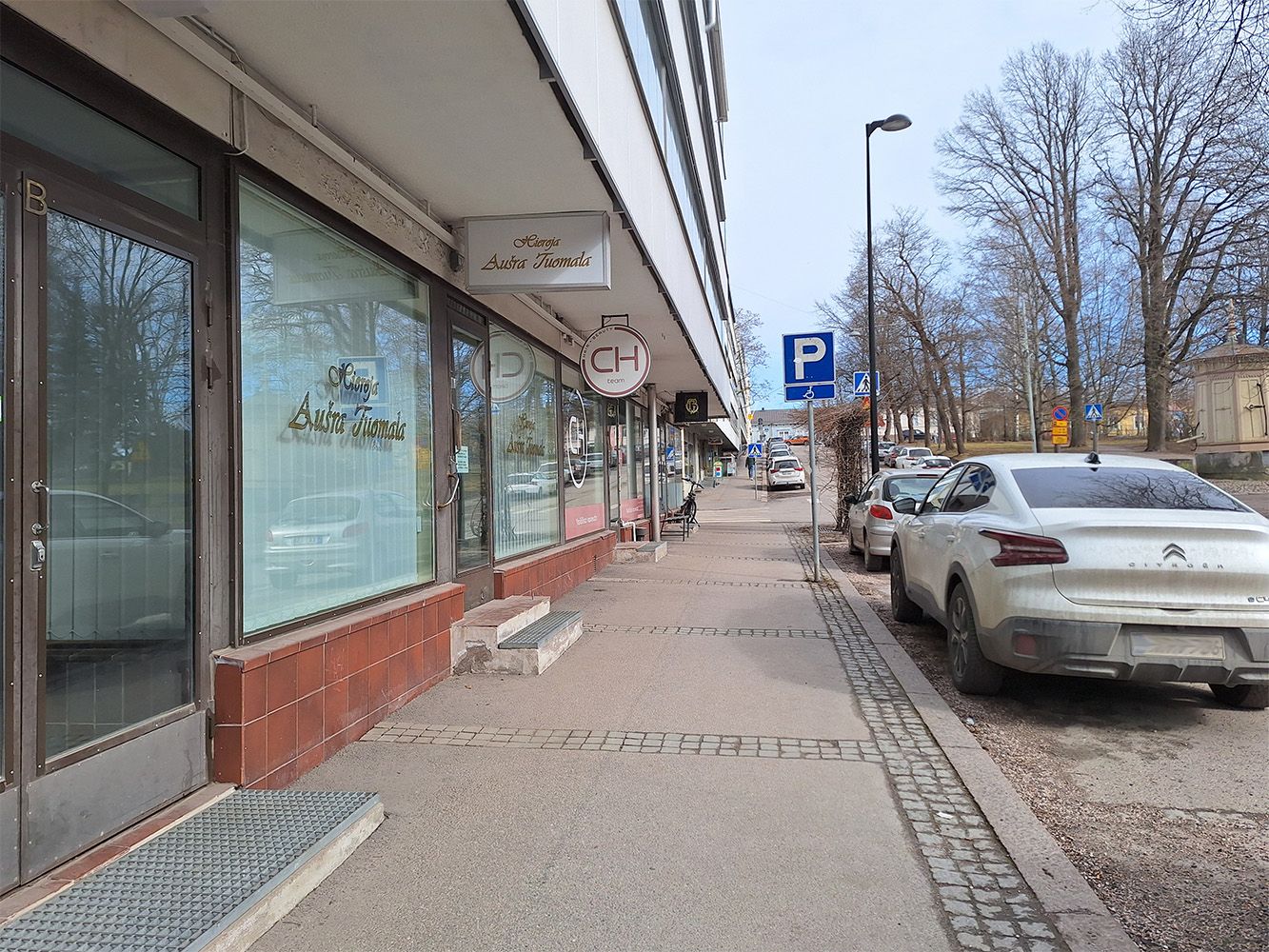 Ympäristö: Liikkeitä, asuinhuoneistoja, kaikki keskustan palvelut, kaupunginpuisto