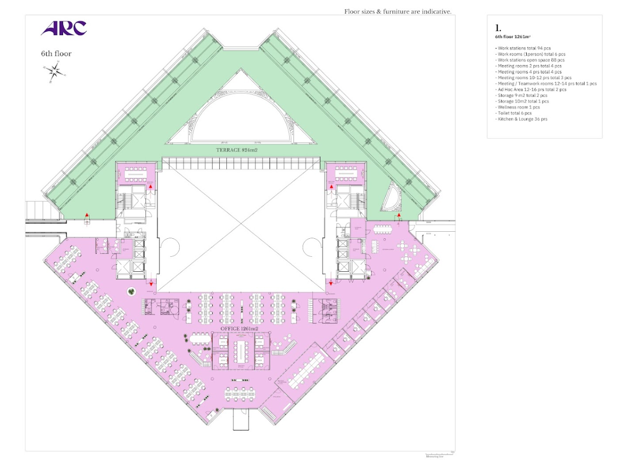 Alunperin Nokian pääkonttoriksi suunniteltu korkeatasoinen toimistokeskus Keilaniemen ARC. Tämä tilakokonaisuus käsittää kerrokset 4-6, yhteensä kooltaan 5931 m2. Heti vuokrattavissa yhdessä tasossa ensiluokkaista toimistotilaa jopa 2.300m2 (5krs), puolikas kerros on 1.150m2. Kakkoskerros on jaettavissa myös pienempiin osiin alkaen 200m2, (katso tarkemmin liitteen pohjakuvista). Tilat muokataan käyttäjille sopiviksi monitilatoimistoiksi. Talon vuokralaisilla on käytettävissä poikkeuksellisen hyvät oheispalvelut, myös pysäköintitilaa on runsasti saatavilla. Ota yhteyttä ja sovi esittely, vuokrauspalvelumme on tilanhakijoille maksuton.