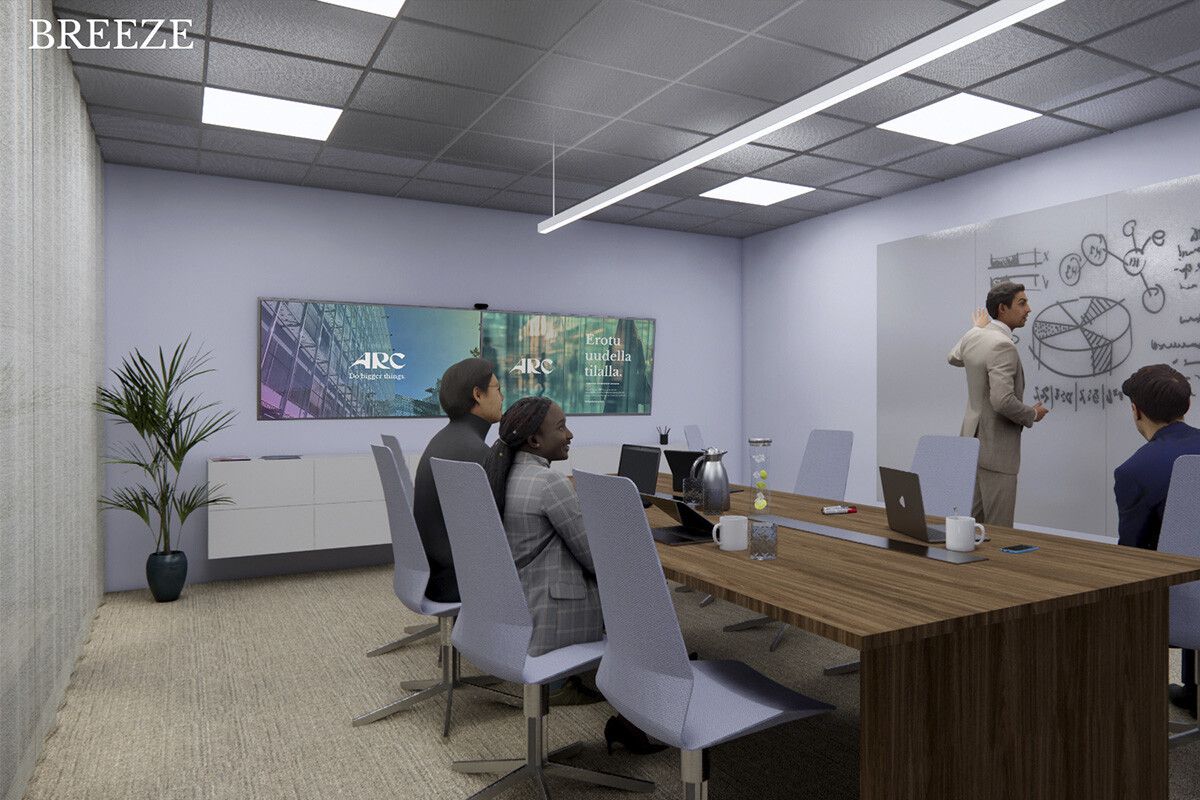 Valoisa toimistotila kiinteistön toisessa kerroksessa. Tilat remontoidaan ja niihin rakennetaan taukokeittiö sekä neuvottelu- ja työhuoneita. Teidän on mahdollista valita valmiiksi suunniteltu tilakonsepti tai suunnitella itse uniikki lopputoteutus. Omien tilojen lisäksi toisen kerroksen vuokralaiset jakavat yhteisen neuvottelukeskuksen, jonne on suunnitteilla erikokoisia neuvottelu- ja työskentelytiloja asiakastapaamisiin sekä etäpalavereihin.