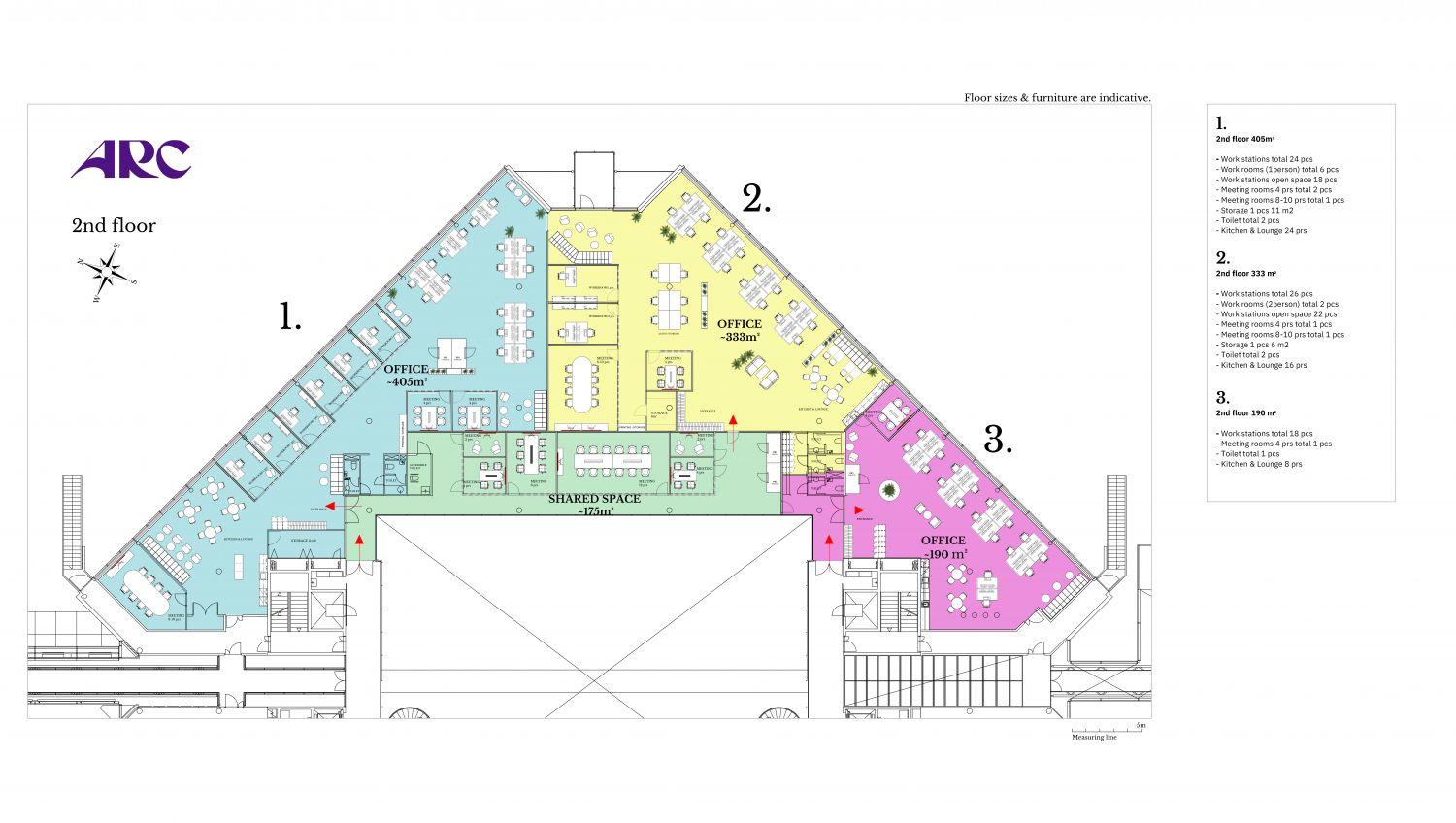 Keilaniemen ARC tarjoaa avaraa ja valoisaa toimistotilaa merellisellä sijainnilla. Tilaa löytyy pienistä toimistoista aina isoihin, pääkonttoritason ratkaisuihin saakka. Tilat voidaan räätälöidä yksilöllisesti toiveidenne mukaan. ARCin palveluhin kuuluvat aulapalvelut, ravintola, kuntosali, kokouspalvelut sekä joustavat coworking-tilat. Oman auton saa kiinteistön parkkihalliin, ja myös pyörille löytyy säilytystilaa. Lisäksi saatte nauttia merellisistä maisemista, puutarhamaisesta piha-alueesta sekä suurista kattoterasseista.