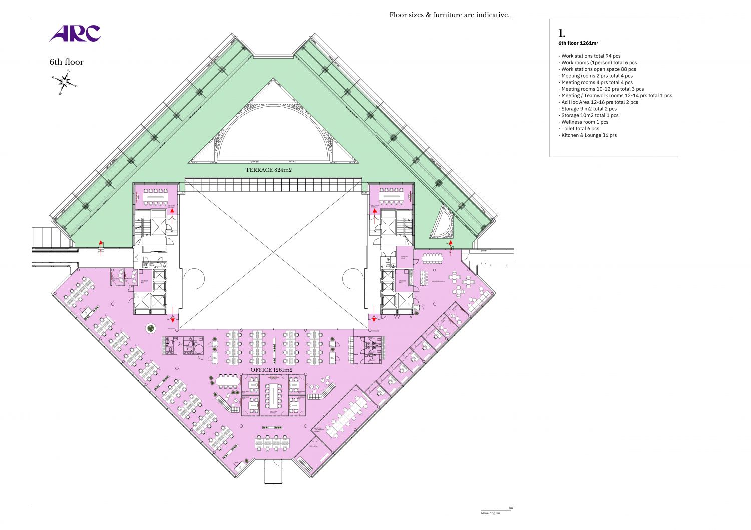 Keilaniemen ARC tarjoaa avaraa ja valoisaa toimistotilaa merellisellä sijainnilla. Tilaa löytyy pienistä toimistoista aina isoihin, pääkonttoritason ratkaisuihin saakka. Tilat voidaan räätälöidä yksilöllisesti toiveidenne mukaan. ARCin palveluhin kuuluvat aulapalvelut, ravintola, kuntosali, kokouspalvelut sekä joustavat coworking-tilat. Oman auton saa kiinteistön parkkihalliin, ja myös pyörille löytyy säilytystilaa. Lisäksi saatte nauttia merellisistä maisemista, puutarhamaisesta piha-alueesta sekä suurista kattoterasseista.
