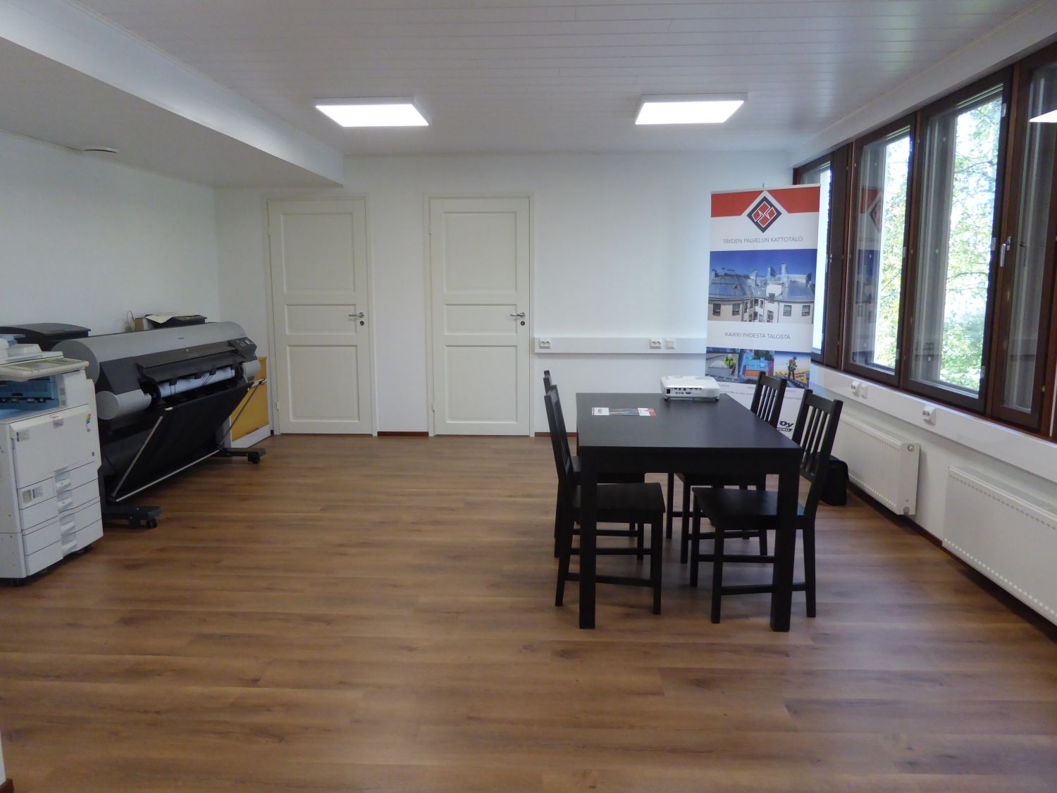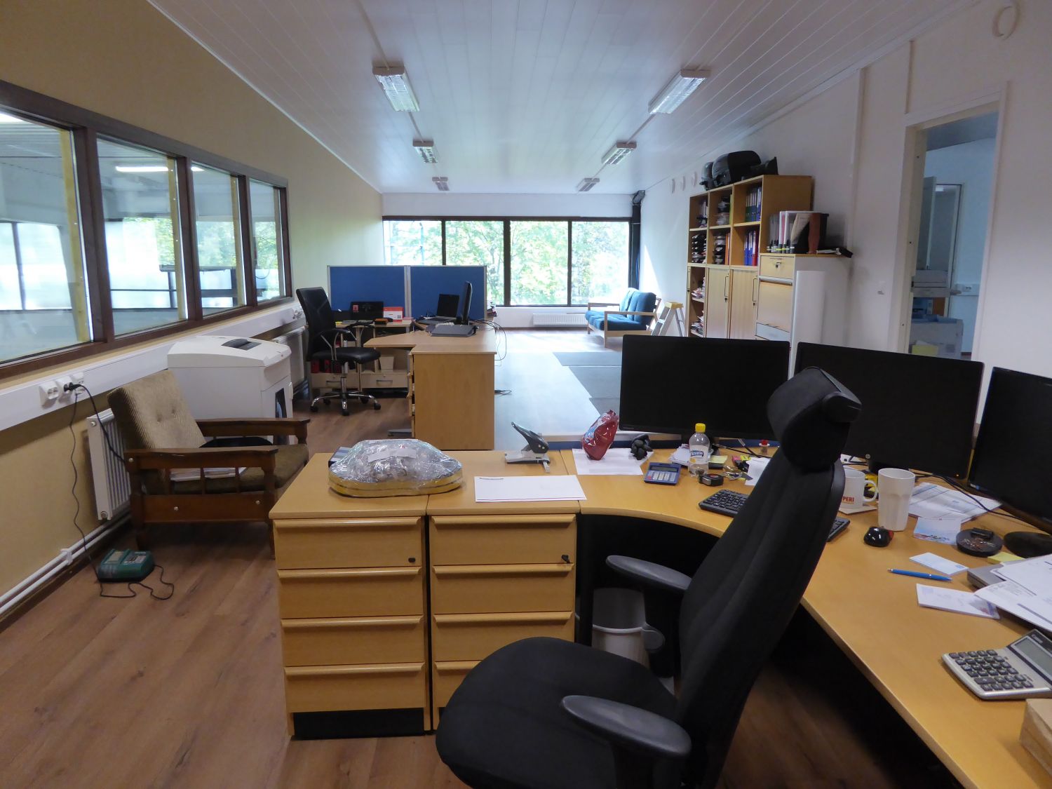 Tilat: 1100 m2 sisaän ajettavaa tuotanto-varastotilaa, jossa 24 m pitkät huoltomonttu ja pesula. Sopii siis raskaallekin kuljetuskalustolle huoltoon ja varastointiin. Toisessa kerroksessa toimisto ja sosiaalitilaa.