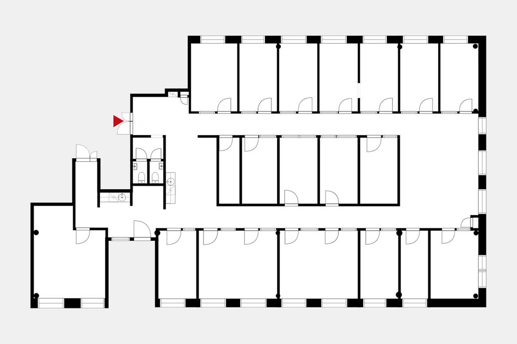 Tämä 415 m² toimistotila sijaitsee kiinteistön 2 kerroksessa. Tila on huonetoimistoa, jossa on oma keittiöpiste ja wc:t.