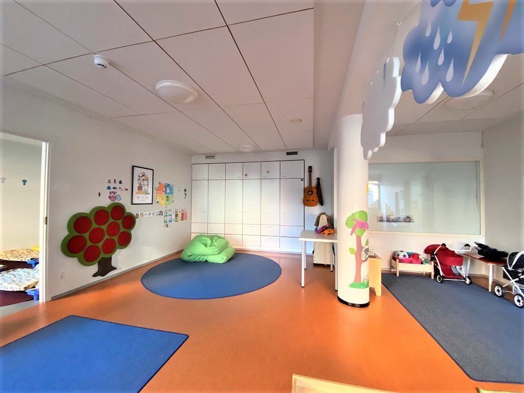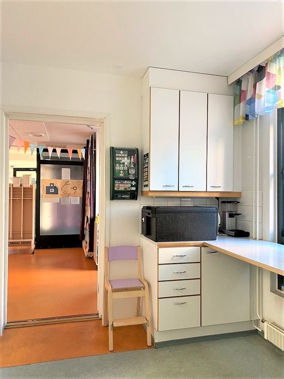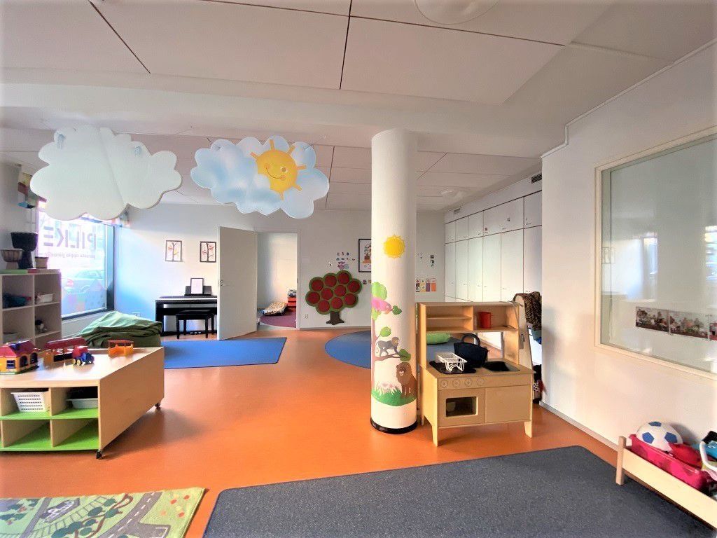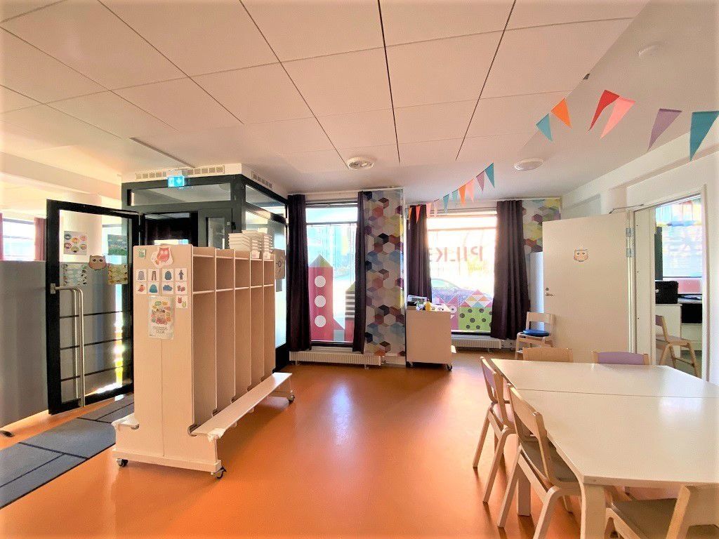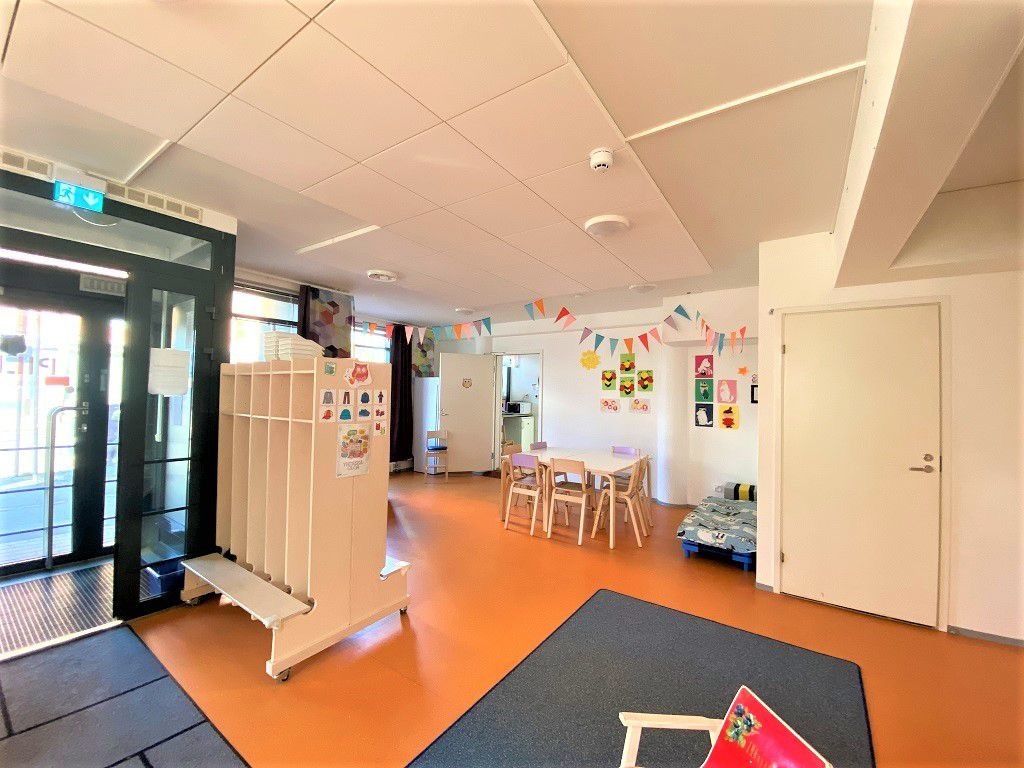 Tämä valoisa 229,5 m² liiketila sijaitsee kiinteistön 1. kerroksessa ja siinä on viimeksi toiminut päiväkoti. Tilaa voidaan soveltaa monenlaiseen käyttöön. Tila koostuu viidestä erikokoisesta huoneesta ja tilasta löytyy useita wc-tiloja ja keittiö. Lisäksi kiinteistön sisäpihan leikkialuetta on hyödynnetty päiväkodin ulkoilutilana. Sisäpihan puolella on myös oma pieni aidattu ulkoilusyvennys. Tilaan on kolme sisäänkäyntiä, kaksi kadun puolella ja yksi sisäpihalla. Kohde on tarvittaessa jaettavissa kahteen osaan 66 m² ja 163,5 m².