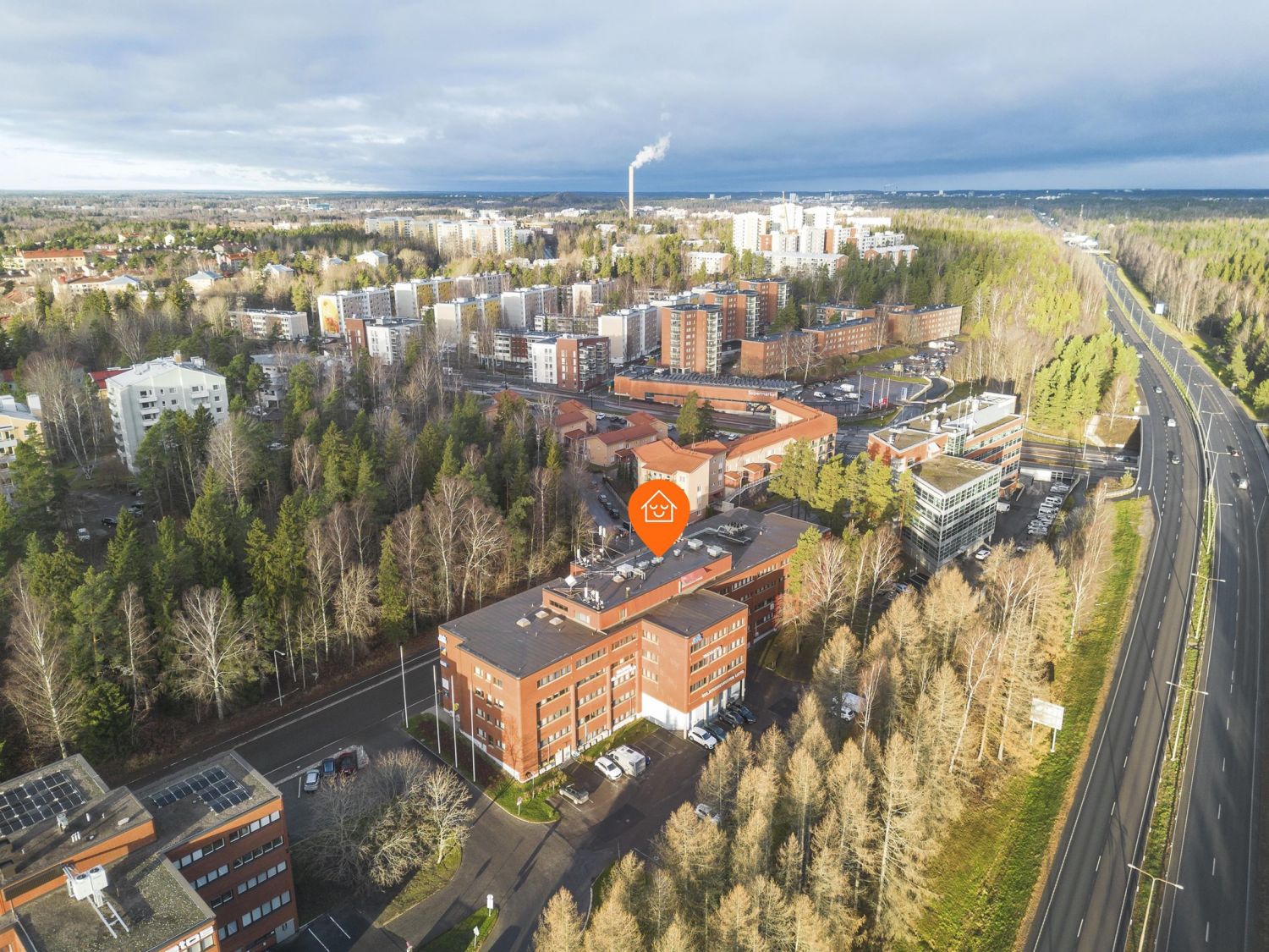 Hyvä saavutettavuus myös julkisilla, niin linja-auto, kuin lähellä kulkeva Raide Jokeri pikaraitiolinja.