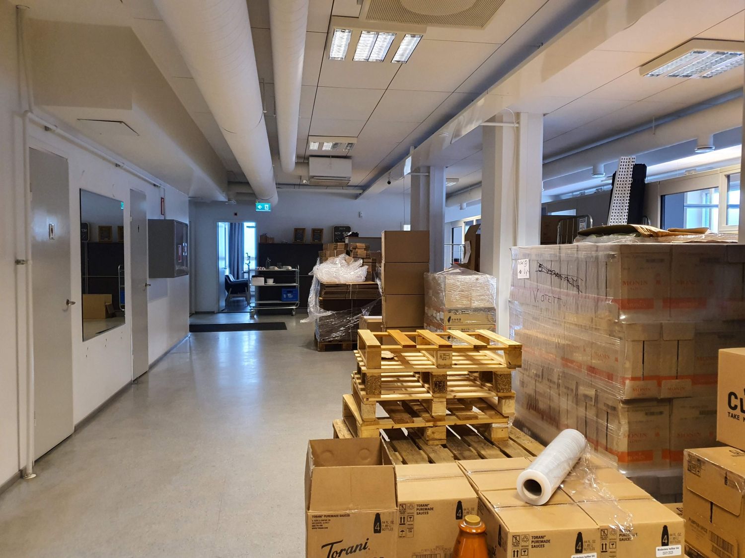 Kulku tilaan A- sekä B-portaan kautta. Tavarahuolto sujuu kätevästi kahdella 1 500 kg tavarahissillä. Lastaus joko rakennuksen takaa tai A-portaan lastauslaiturin kautta, joka uusitaan kevään 2025 aikana.