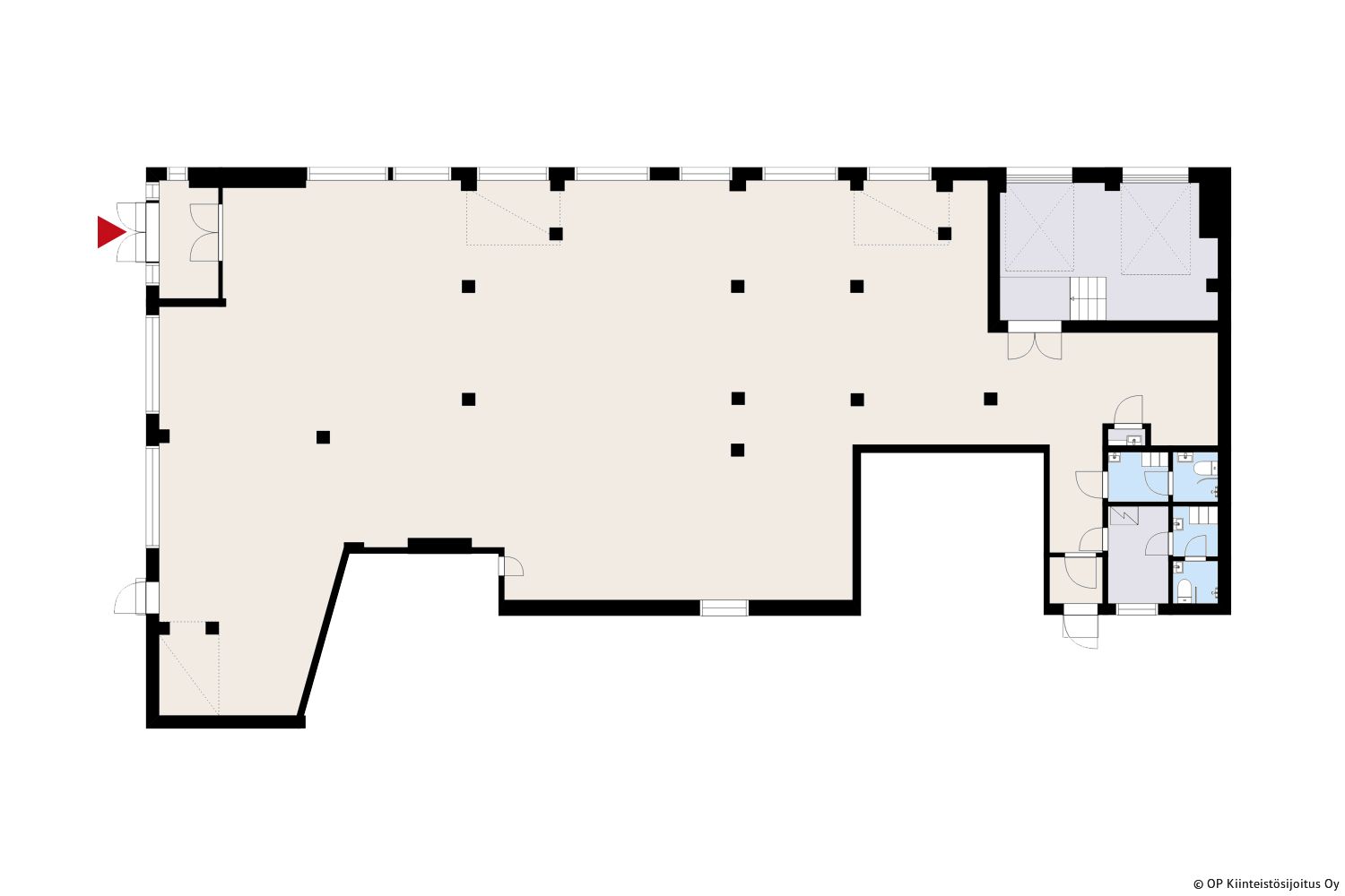Myymäläkäyttöön, showroomiksi, koulutustilaksi tai muuhun vastaavaan toimintaan hyvin soveltuva liiketila näkyvällä paikalla Satamakadun ja Kirkkokadun risteyksessä. Tähän toimitilaan kuuluu kahdella isolla nosto-ovella varustettu lastaustila/jätehuone Satamakadun puolella. Tilan perällä on myös henkilökunnan taukotila ja sosiaalitilat sis. suihkut & pukuhuoneet.