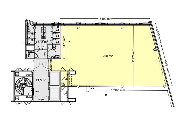 Tämä 208 m² toimistotila sijaitsee kiinteistön 5. kerroksessa. Tila on mahdollista yhdistää viereisen 1055 m² tilan kanssa, jolloin kokonaisneliöt ovat 1263 m². Kuvat ovat yleiskuvia kiinteistön tiloista.