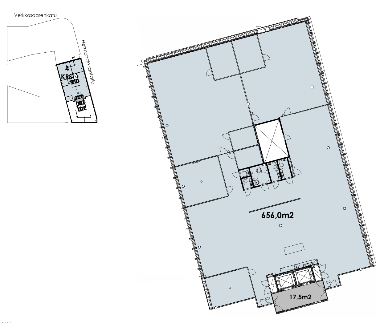 Tämä avara toimistotila koostuu avokonttorista, jota täydentävät neuvottelutila sekä työhuoneet. Toimiston sydämen muodostaa oma taukokeittiö, jonka ääreen on mukava kerääntyä viettämään kahvitaukoa. Tilassa on omat wc:t, joista yksi on esteetön. Ilmoituksen kuvat ovat havainnekuvia rakennuksen tiloista eivätkä välttämättä vastaa juuri tätä tilaa.