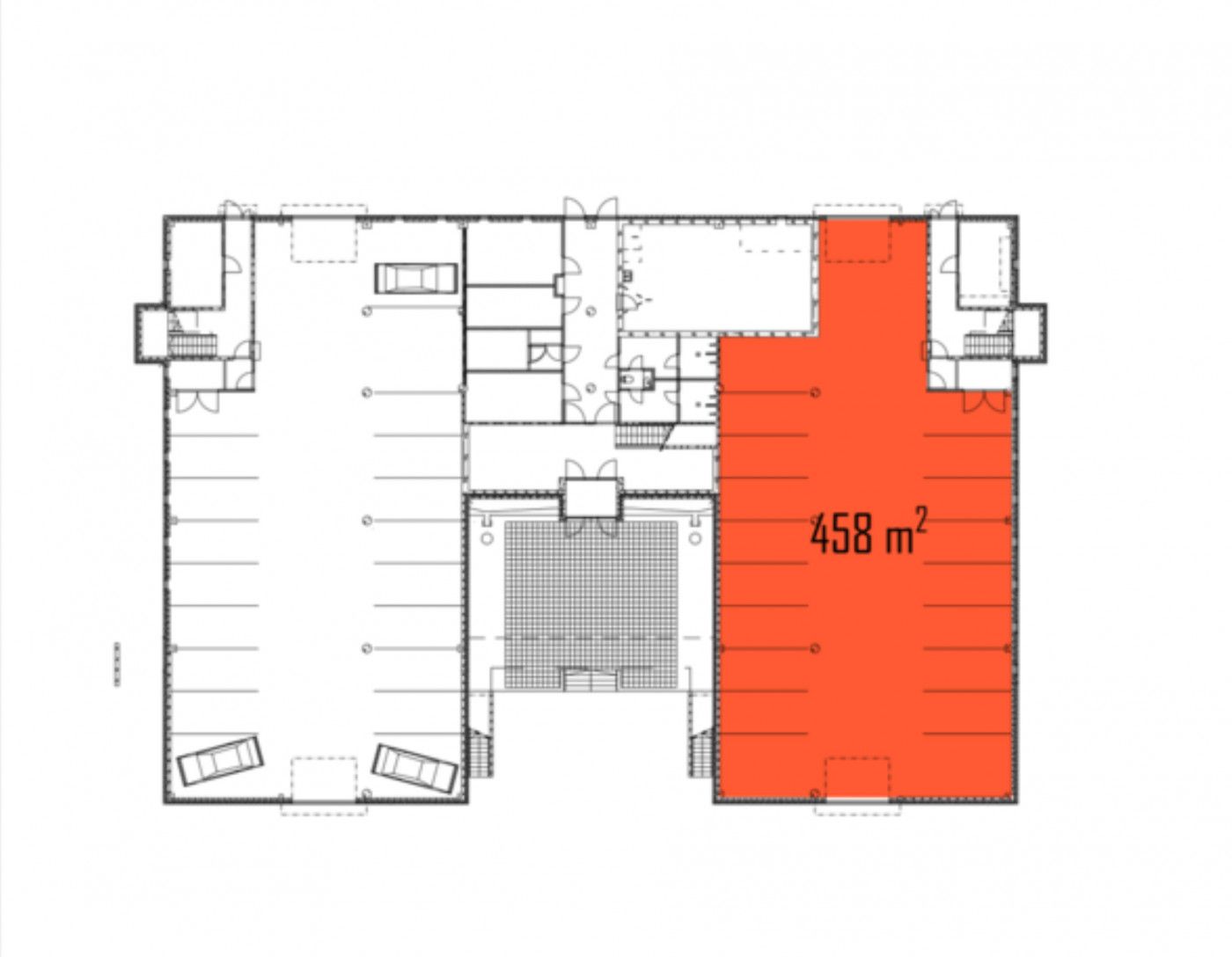 Tarjolla noin 458 m² kokoinen varastotila. Tilassa on nosto-ovet molemmissa päädyissä (leveys noin 360 cm, korkeus noin 240 cm), mikä mahdollistaa sujuvan tavaraliikenteen. Tilassa ei ole lattiakaivoa, joten se ei sovellu autopesulaksi.