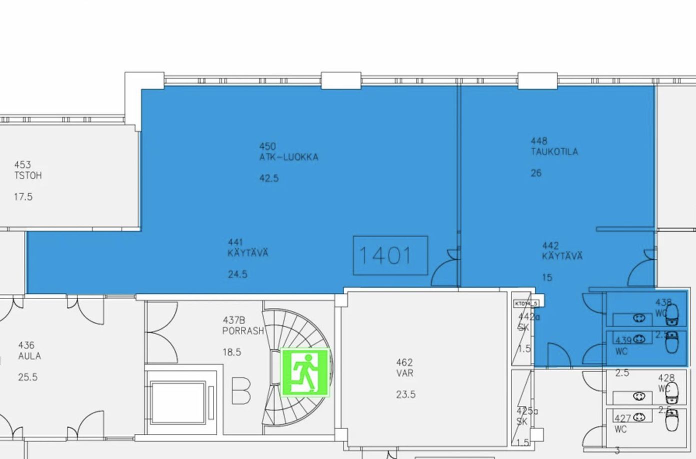 Vuokrattavana 4. kerroksen 115,5 m2 toimisto. Tila koostuu kahdesta avotilasta. Tästä pienellä pintaremontilla edullista ja muunneltavaa toimistotilaa.