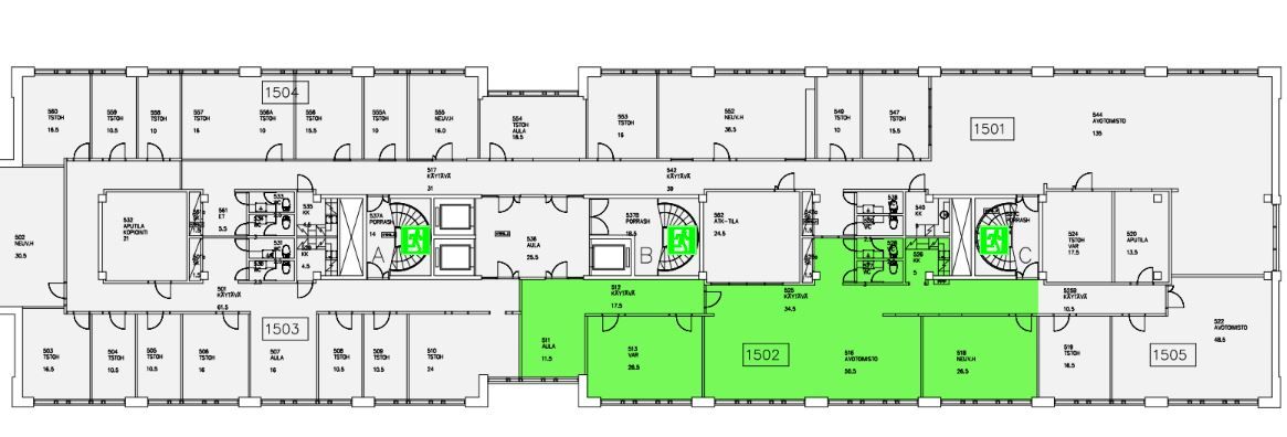 Vapaana 5. kerroksessa siisti ja tehokas 184 m2 toimistotila joka koostuu pääosin huoneista.