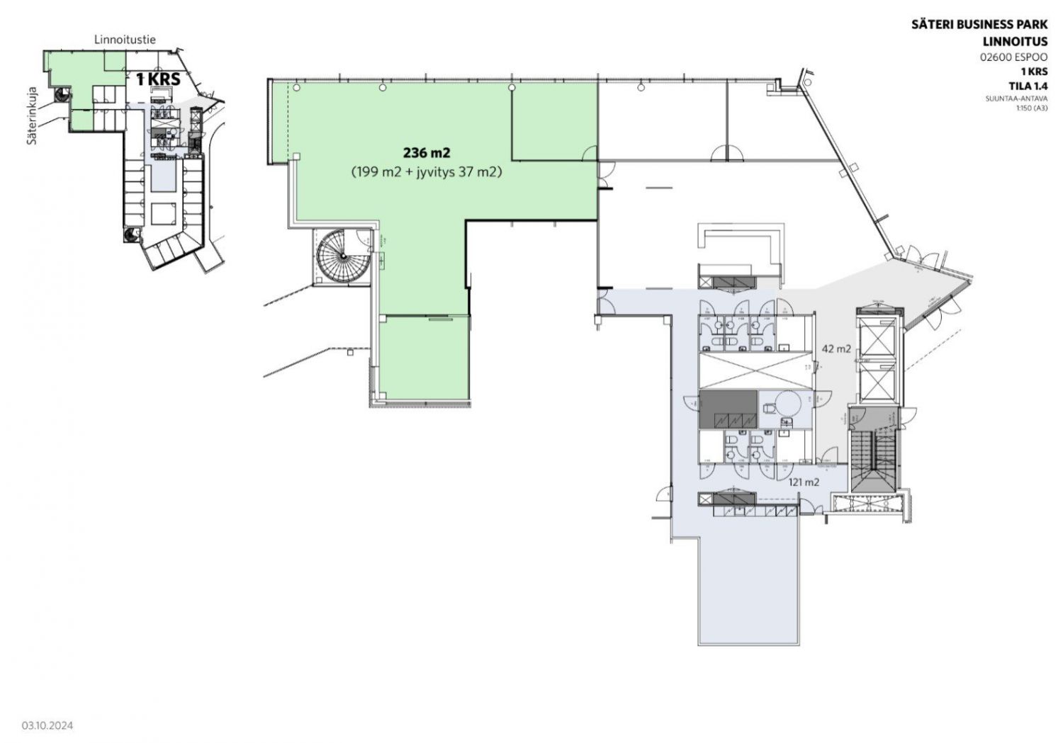 Fiksua toimistotilaa ilman hukkaneliöitä. Tämä toimisto koostuu avokonttorista sekä kahdesta työ-/neuvottelutilasta. Kerroksen vuokralaisilla on käytössään yhteinen keittiö, lounge sekä wc-tilat. Suuret ikkunat Linnoitustien suuntaan takaavat valoisan työympäristön.