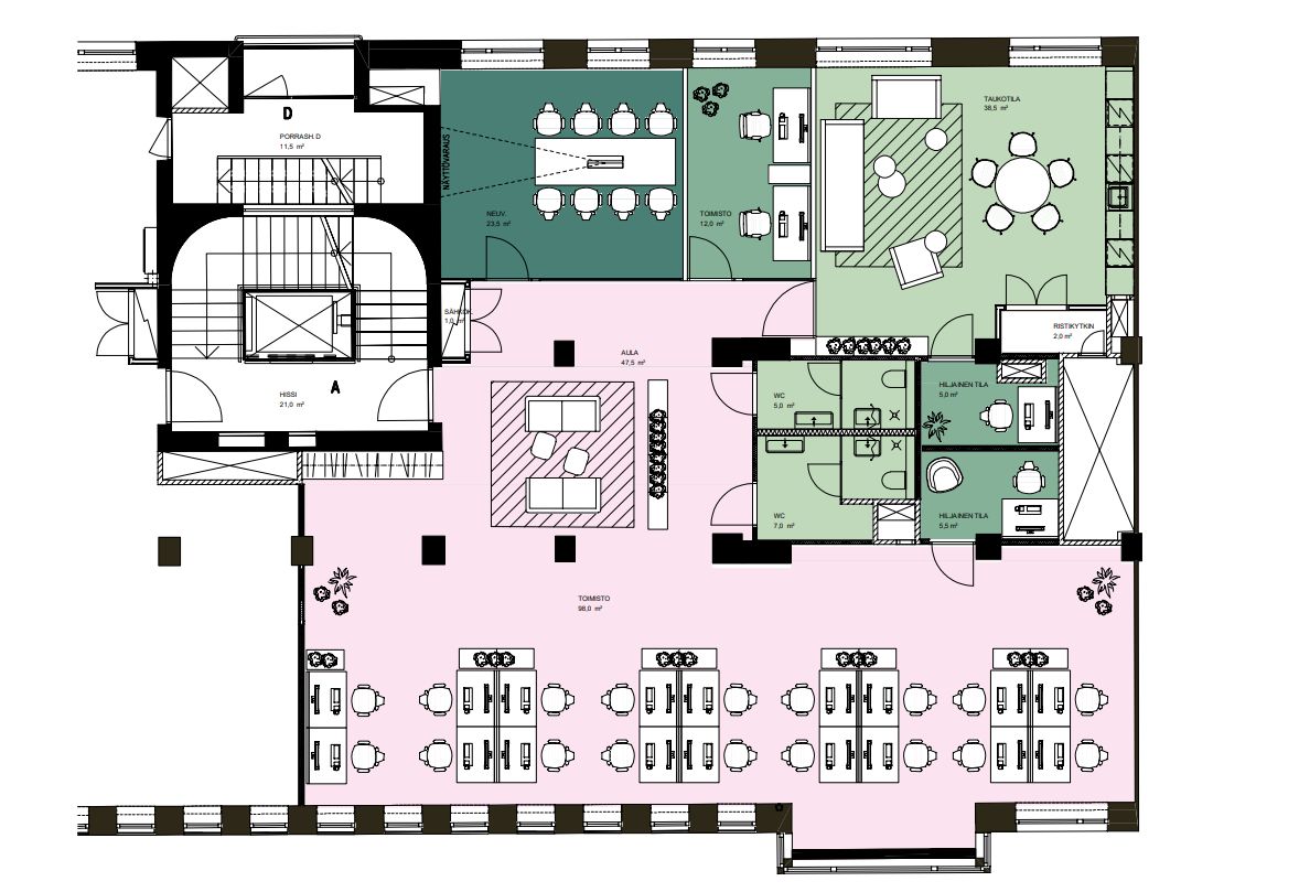 Vuokrattavana tehokasta, edustavaa toimistotilaa Helsingin ydinkeskustassa. Tilasta näkymät vehreälle Bulevardille. Toimisto viimeistellään vuokralaisen tarpeen mukaan.