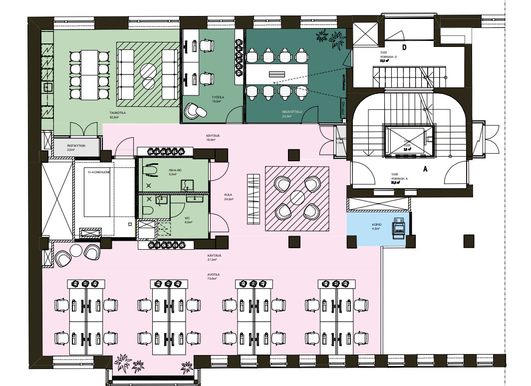 Vuokrattavana valoisaa, tehokasta, edustavaa toimistotilaa Helsingin ydinkeskustassa.