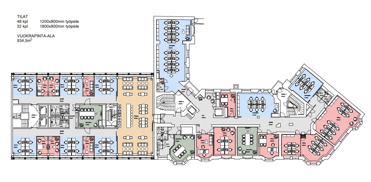 Vuokrattavana toisen kerroksen avaraa, siistiä toimistotilaa.