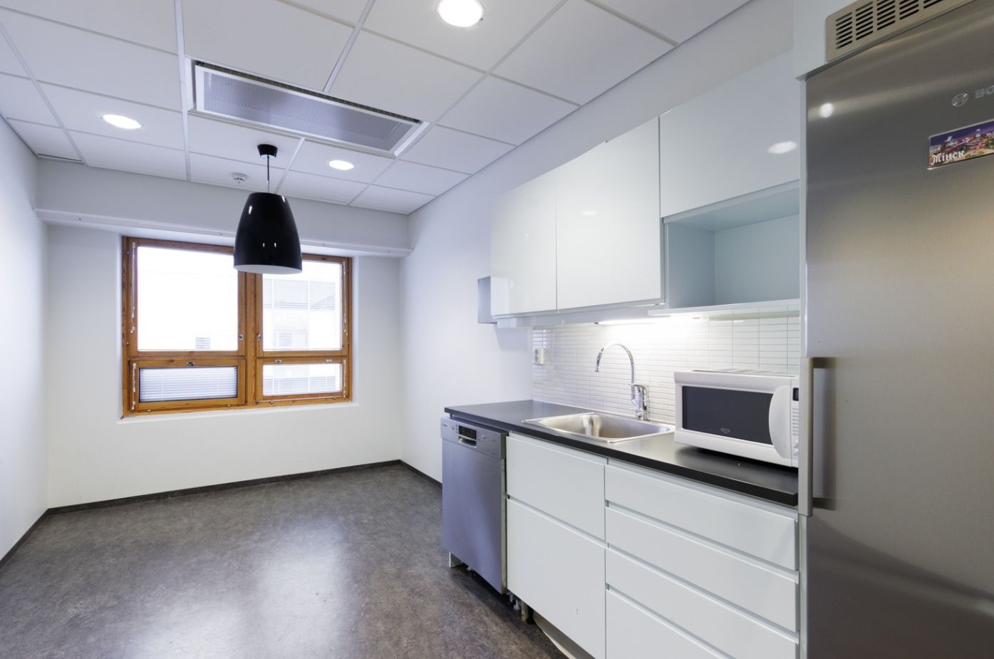 Tämä ylimmän kerroksen moderni toimitila sopii monenlaisiin tarpeisiin. Tila sisältää useita työ- ja neuvotteluhuoneita sekä varastokomeron. Lisäksi tilassa on kaksi taukohuonetta työkeittiöllä ja wc-tilat.