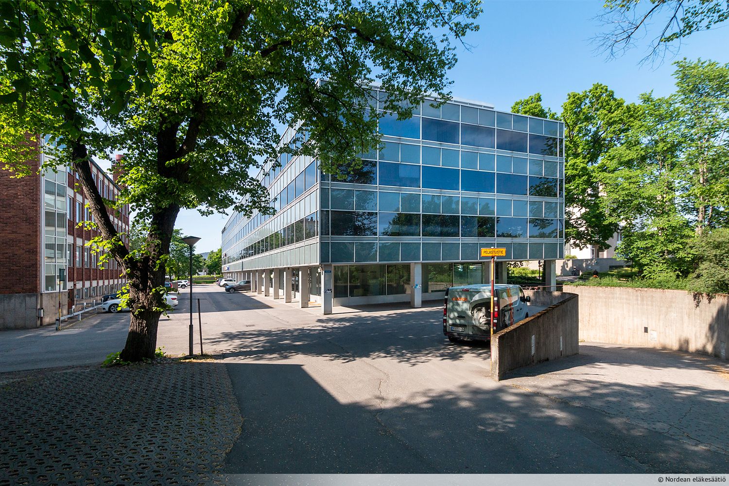 Kiinteistön lähellä Paavo Nurmen tien pysäköintialue.