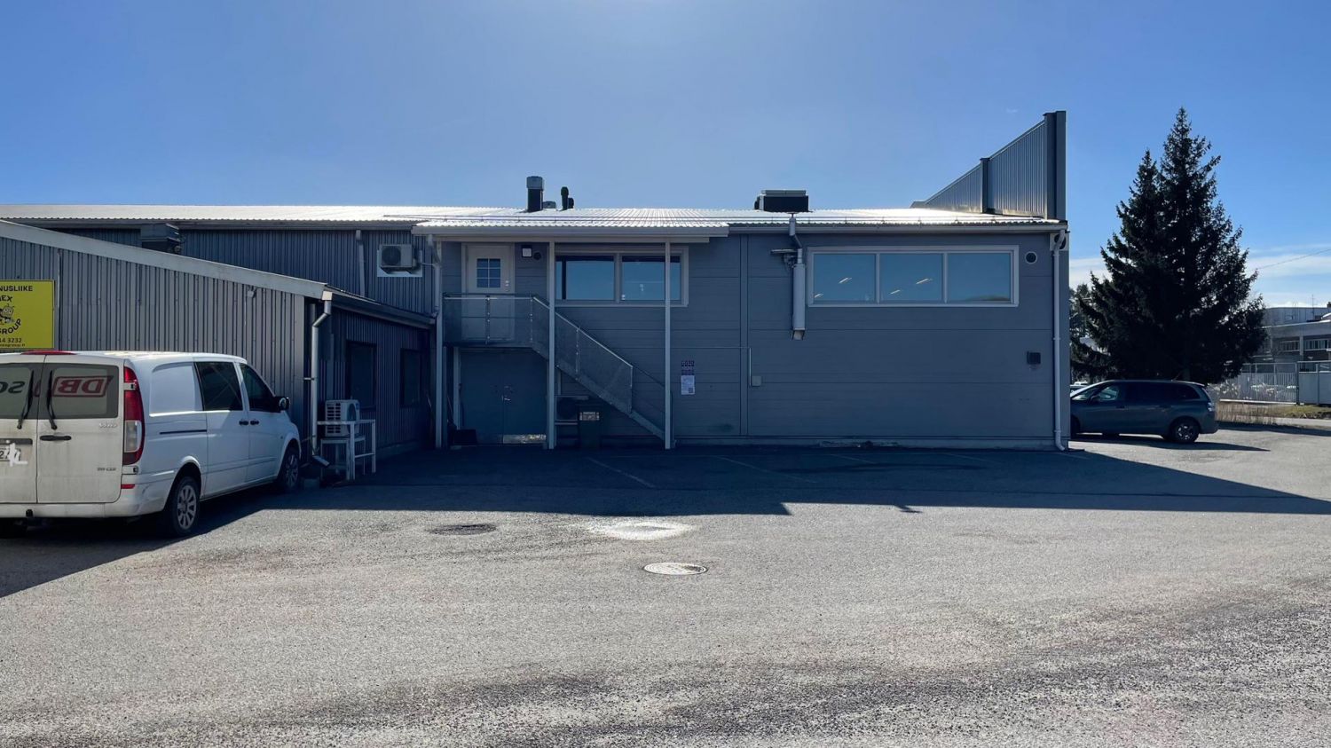 4 merkittyä pysäköintipaikkaa tilan edessä.