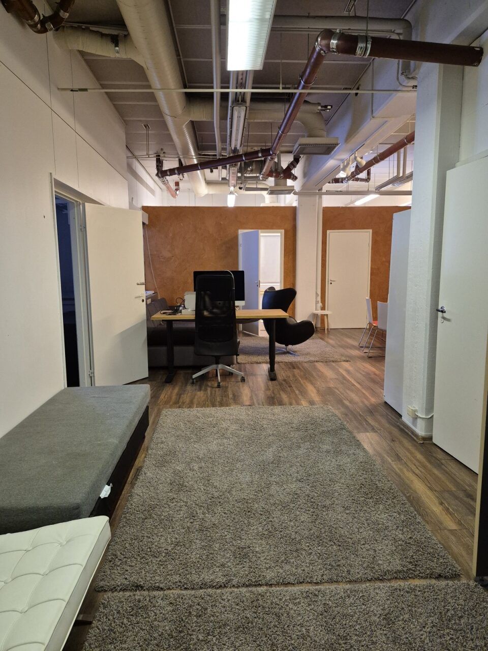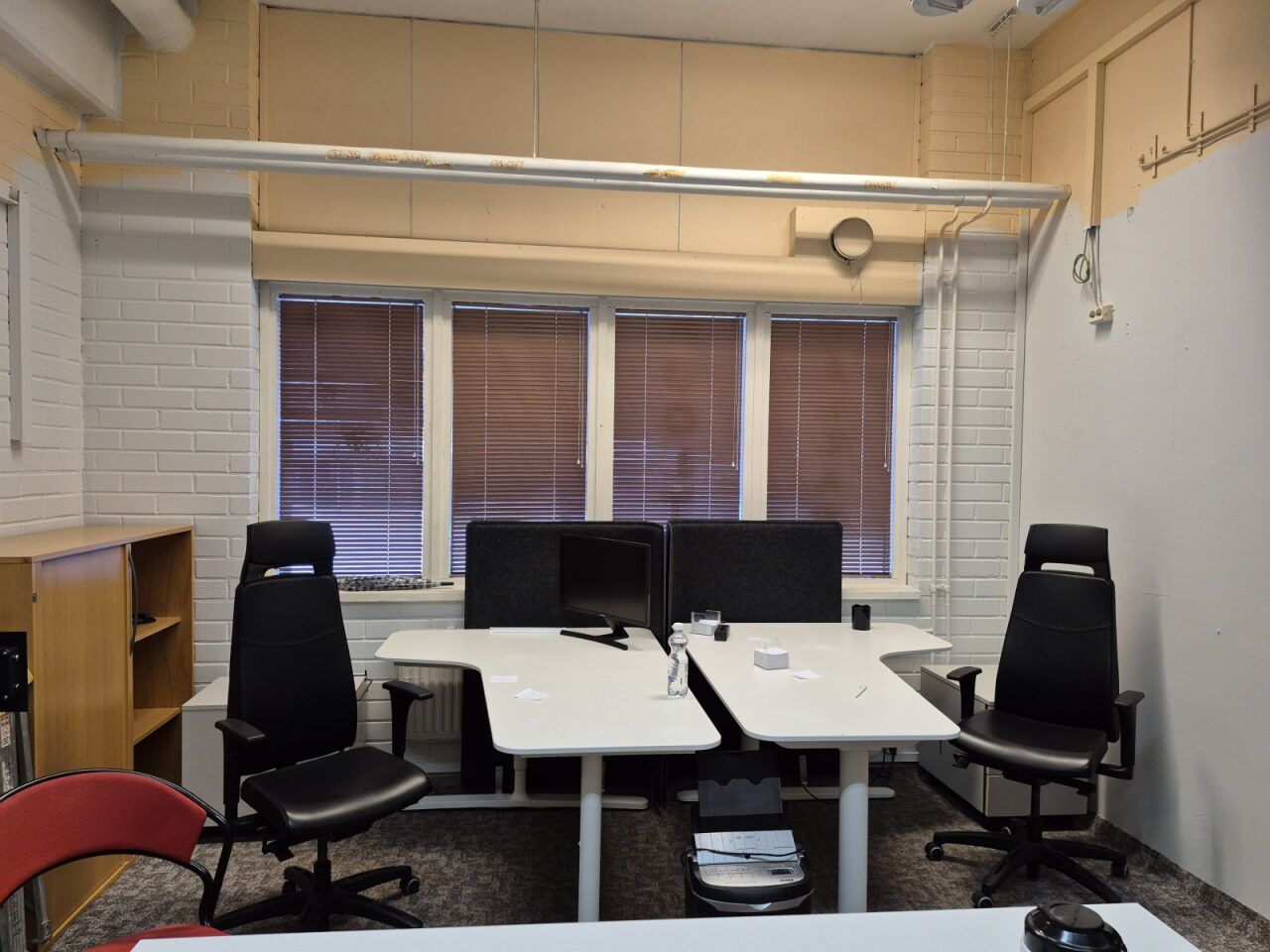 Malminkartanossa noin 90m2 katutason toimistotila. Tilassa kolme kevyillä väliseinillä rajattua toimistohuonetta, avotila, keittokomero, wc ja suihku.