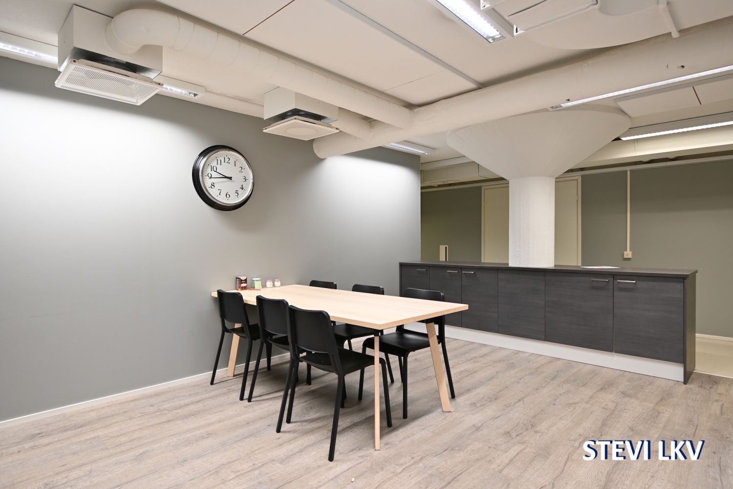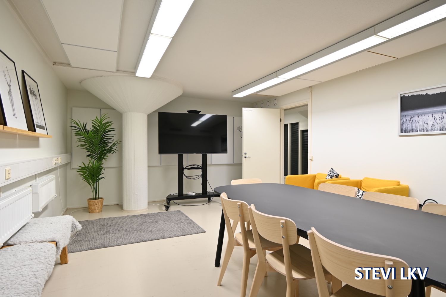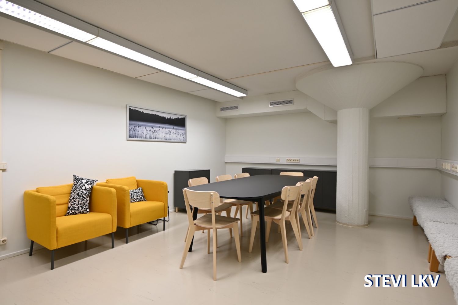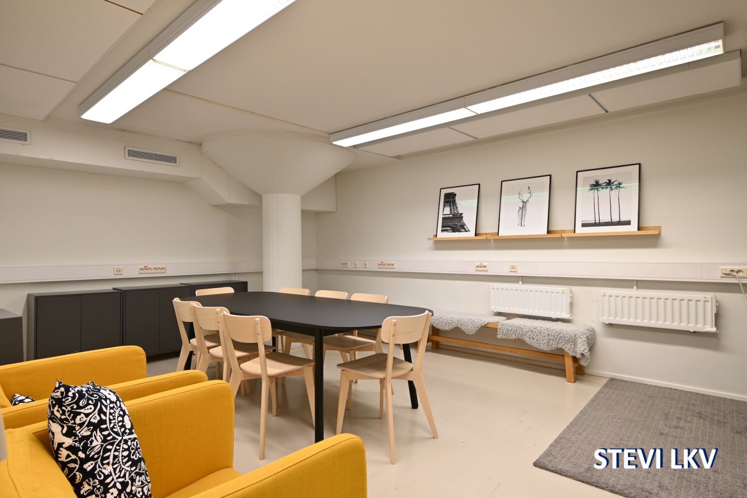 Vuokralaisten käytössä neuvotteluhuone, jonka käyttö sisältyy kuukausivuokraan.