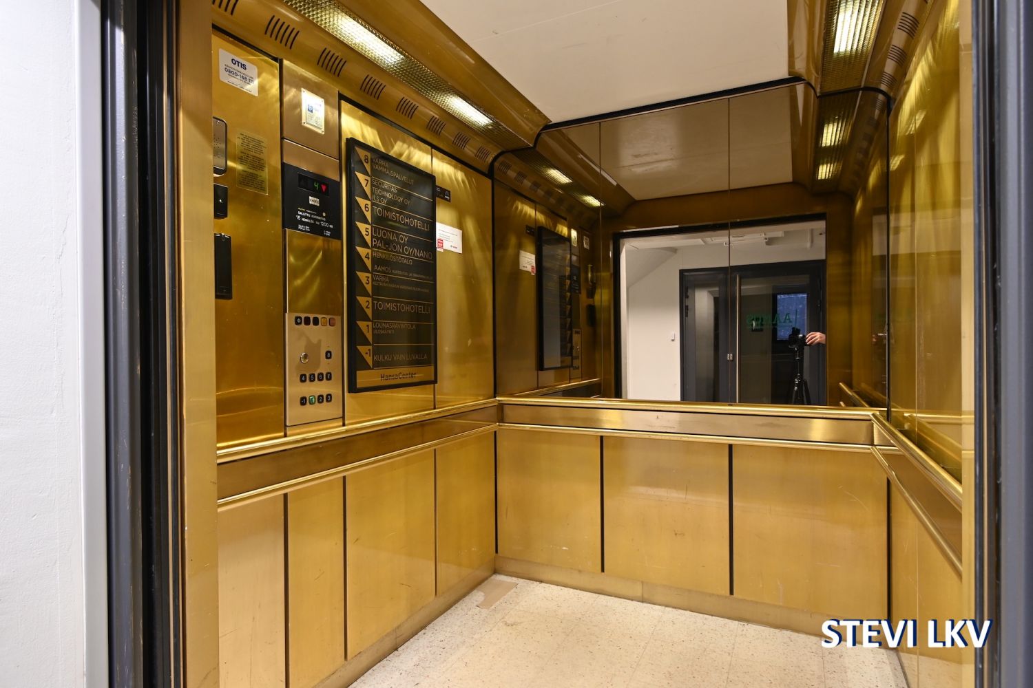 Kiinteistössä on kaksi hissiä ja näyttävä sisääntuloaula.