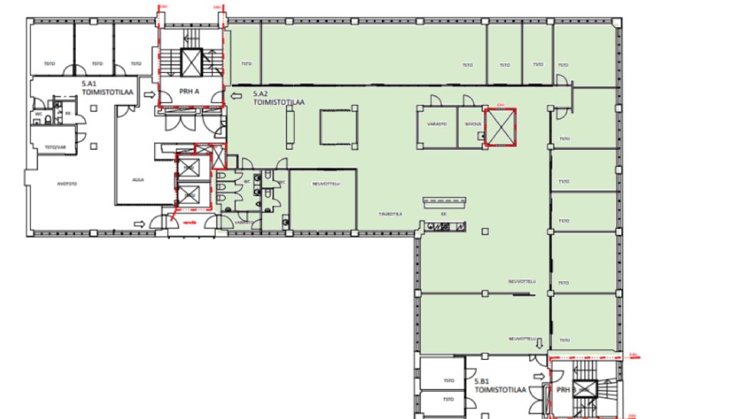 Tämä 715,5 m² toimistotila sijaitsee kiinteistön 5. kerroksessa. Toimistossa on runsaasti tiimi- ja työhuoneita. Keskellä tilaa on valoisa keittiö-lounge.