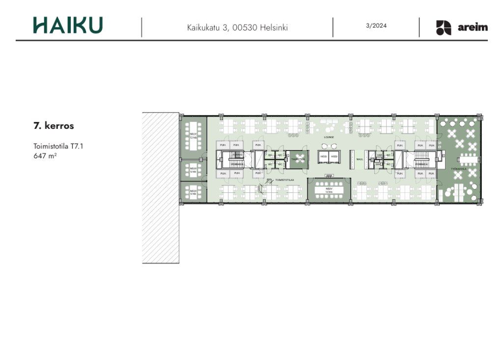 Vuokrattavana 647 m² toimistotilaa Kallion sydämessä, 5. kerroksessa.