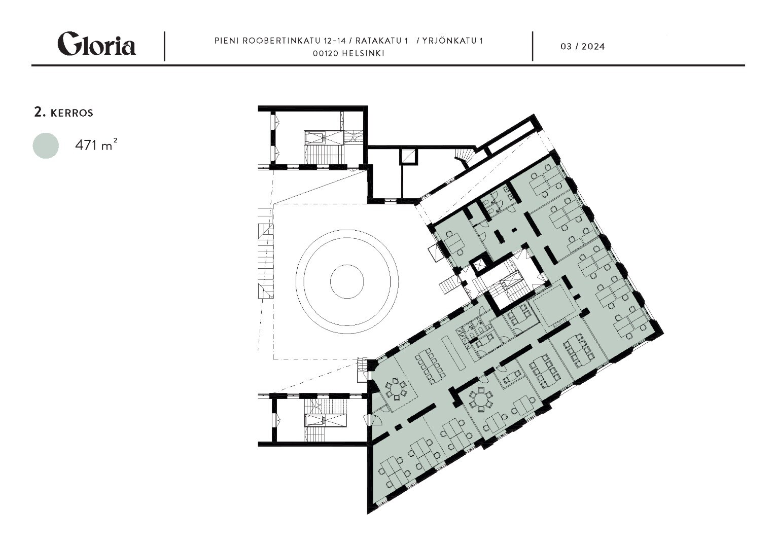 Glorian toimistot valmistuvat vuonna 2025, joten nyt on oikea hetki tarttua tilaisuuteen päästä näihin uniikkeihin tiloihin! Erityisen uniikit tilat löytyvät Glorian tornista, jossa hulppea huonekorkeus ja erittäin suuret kaari-ikkunat lumoavat vierailijat ja tuovat elämyksellisyyttä työpäivään. Olemalla ajoissa liikkeellä, vuokralainen pääsee vaikuttamaan sisustuksen pintoihin ja kevein elementein luotuihin tilarajauksiin. Tilakoot vaihtelevat n. 240 m2 aina yli 700 m2 kokonaisuuksiin.