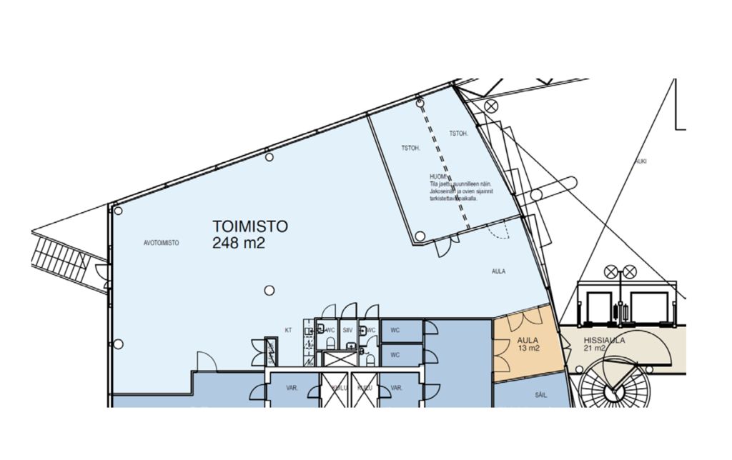Tämä 255 m² toimisto sijaitsee Nina-talon 2. kerroksessa. Pääosin avotilaa, minikeittiö ja 2 wc:tä. Ikkunoista hienot näkymät merelle.