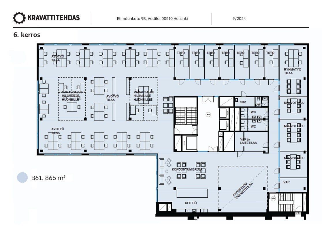 Oletko sinä tämän suuren toimitilan seuraava vuokralainen? Tilasta löytyy monipuolisesti sekä avotilaa että työ- ja neuvotteluhuoneita. Lisäksi tilasta löytyy työkeittiö ja wc-tilat.