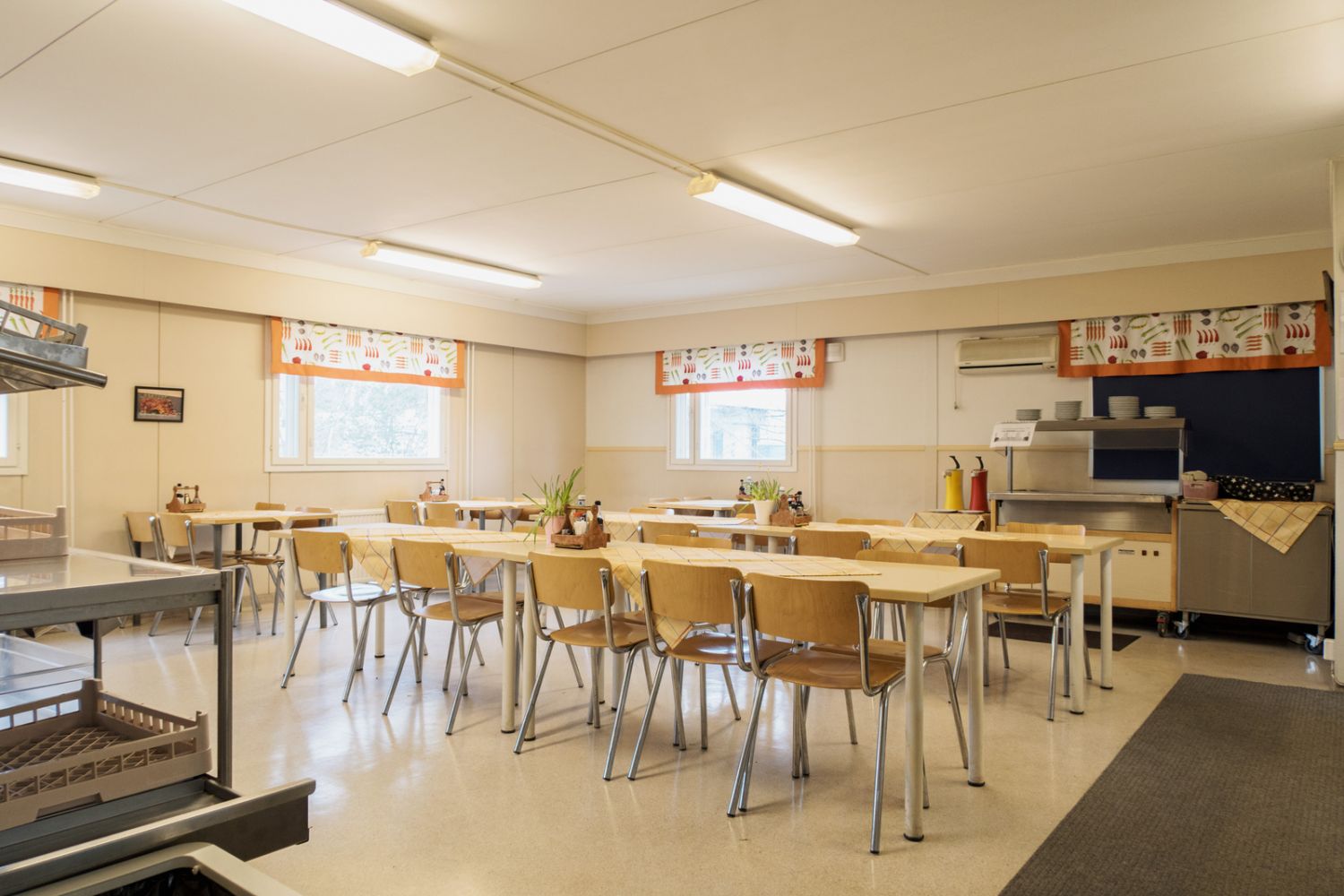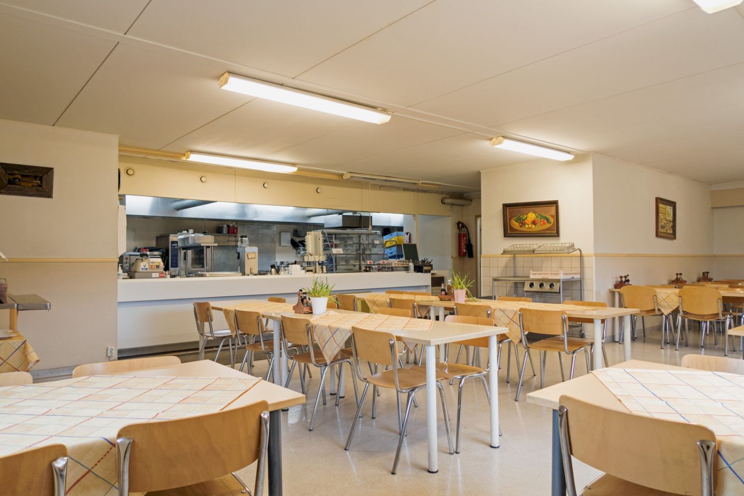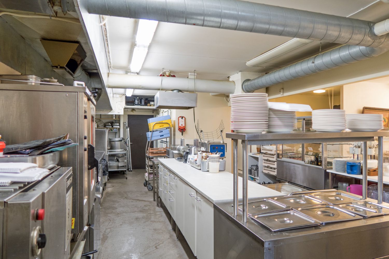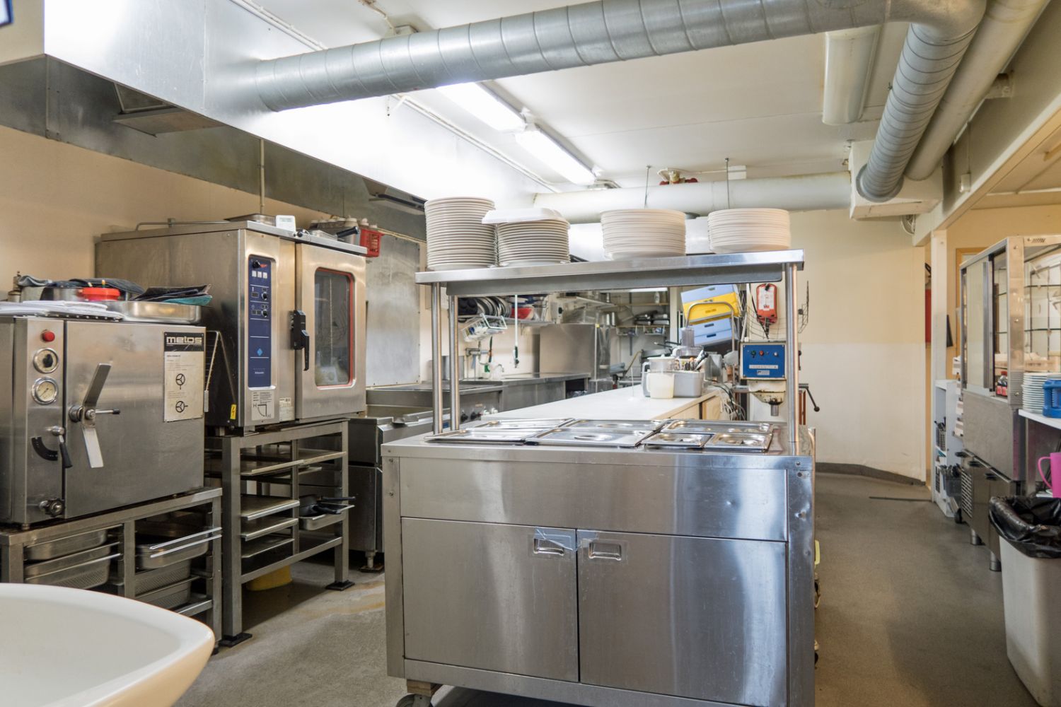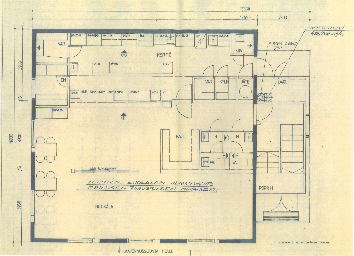 Kauppaan kuuluu laitoskeittiön varusteet mm. höyry/kiertoilmauuni, painekeittokaappi, parila, liesi ja kylmäkaapit 3 kpl.