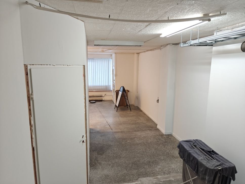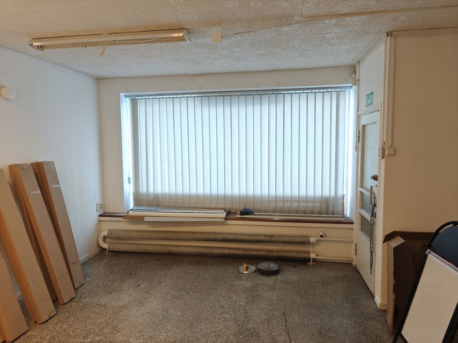 Isommassa liiketilassa on etutila, josta on erotettu yksi huone, huoneessa on ikkuna.