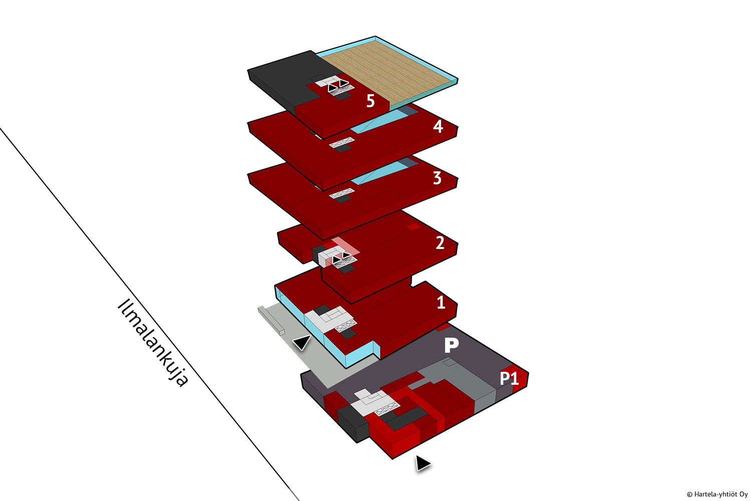 Ilmalan Airi tarjoaa ainutlaatuisen mahdollisuuden yhdelle käyttäjälle, joka haluaa käyttöönsä kaikki 3465 neliötä kerroksista 1-5. Rakennus on suunniteltu vastaamaan nykyaikaisen yrityksen tarpeita ja vaatimuksia, yhdistäen huipputeknologian, energiatehokkuuden ja viihtyisyyden. Tilat ovat täysin räätälöitävissä yrityksen tarpeiden mukaisesti, suunnitellaan yhdessä ammattilaisten kanssa käytännölliset, tehokkaat ja muuntojoustavat toimitilat.