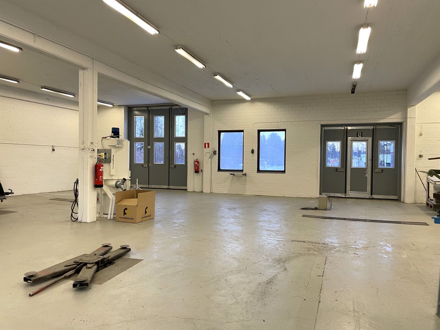 Halliin on kaksi taitto-ovea, korkeampi K4,1m x L3,45m ja matalampi K3,0m x L2,9M). Tontti on ympäriajettava ja tontilla on hyvin tilaa käytettävissä. Pihalla on erillinen noin 200m2 kylmä halli, jossa on betonilattia ja valaistus.