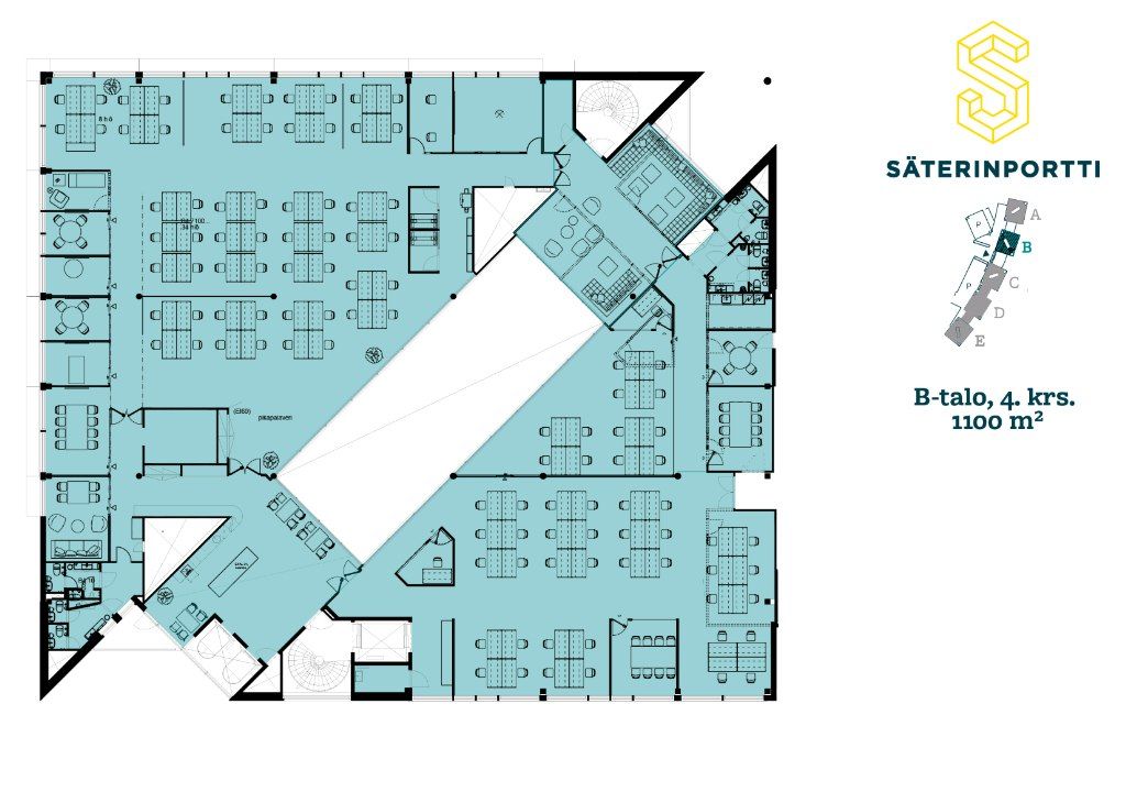 Vuokrattavana 1100 m² 4. kerroksen toimistotilaa.