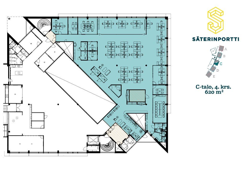 Vuokrattavana 262 m² 4. kerroksen toimistotilaa.