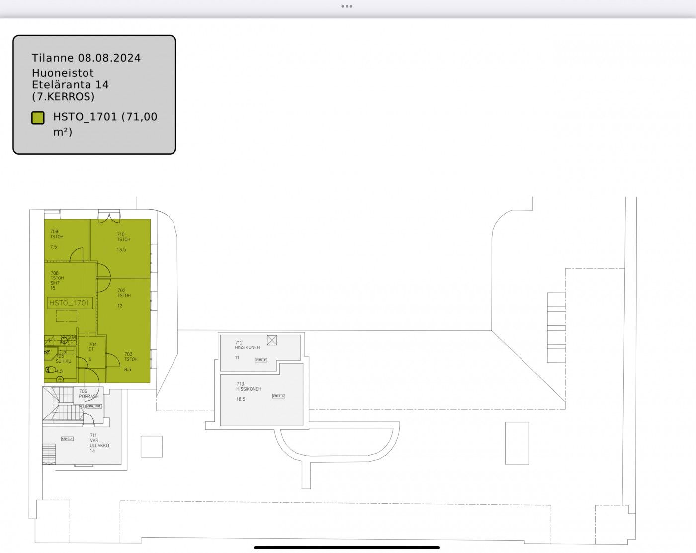 Tämä ylimmän kerroksen toimisto Helsingin sydämessä tarjoaa erinomaisen pohjaratkaisun, jossa on useita toimistohuoneita, keittiö sekä suihku-/wc-tila.