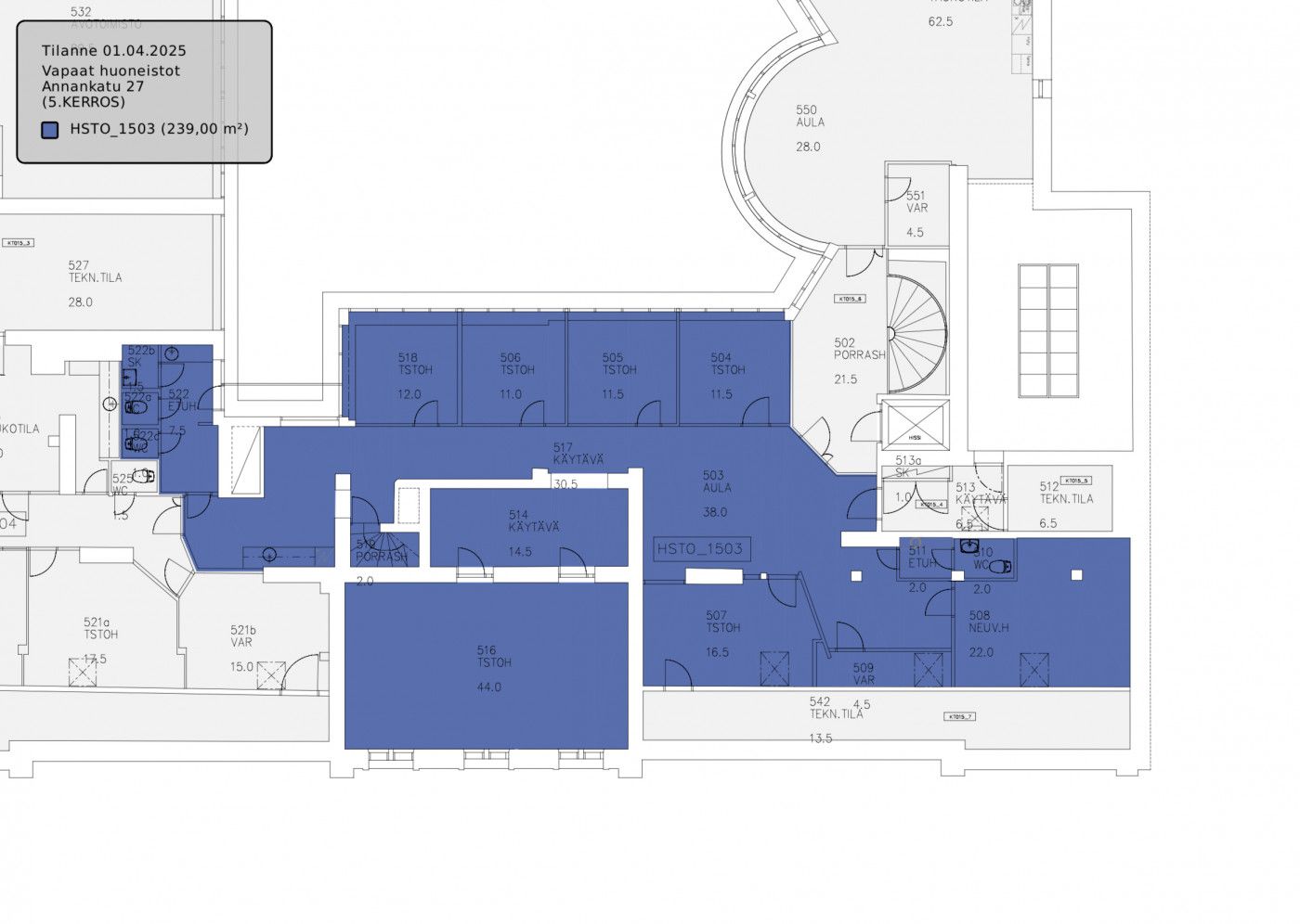 Annankadun 27:ssä sijaitseva viidennen kerroksen toimistokokonaisuus tarjoaa juuri sen, mitä urbaani bisnes tarvitsee: sijaintia, tyyliä ja käytännöllisyyttä. Tila vapautuu 1.3.2025 ja odottaa vuokralaista, joka arvostaa sekä tehokkuutta että estetiikkaa.