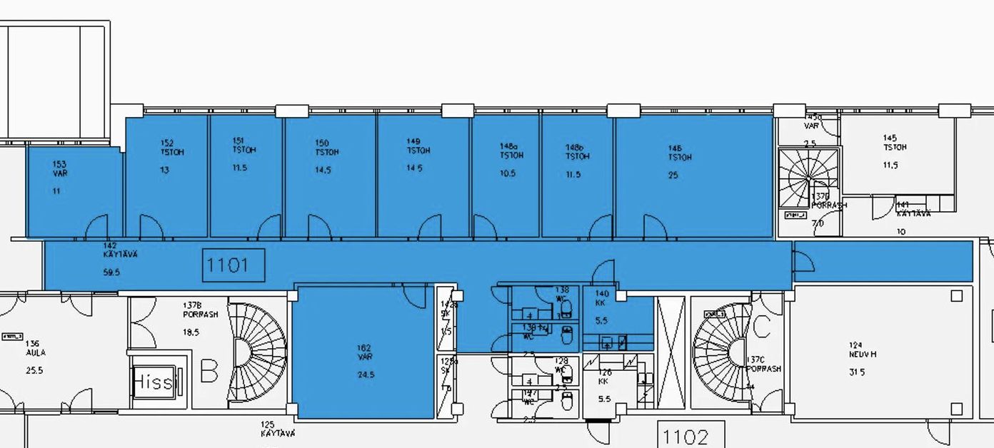 Vuokrattavana 1. kerroksen 216 m2 toimisto, josta saa pintaremontilla edullista ja muunneltavaa toimistotilaa. Tilassa on tällä hetkellä useita toimistohuoneita ja pari varastoa.
