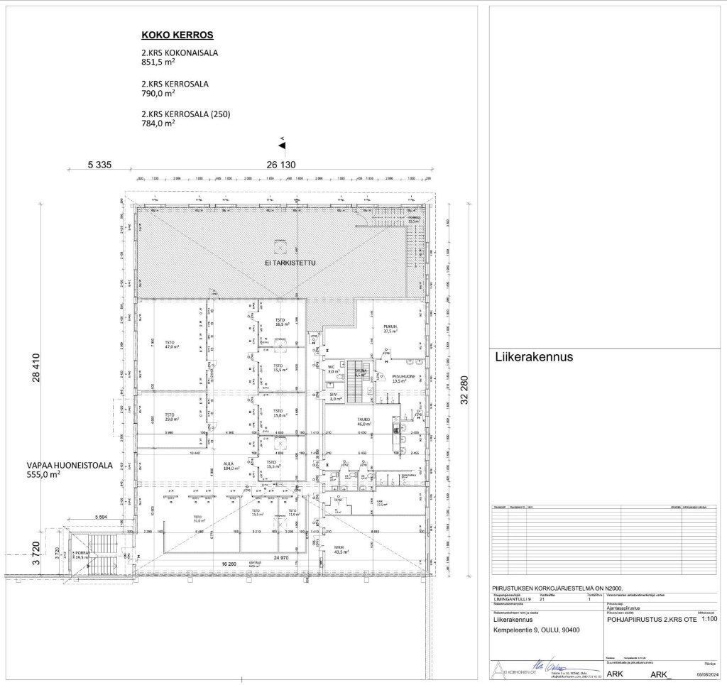 Vuokrattavana 555 m² 2. kerroksen toimistotilaa Oulusta. Tila sijaitsee hyvällä paikalla, mistä on erinomaiset kulkuyhteydet ja palvelut lähellä.