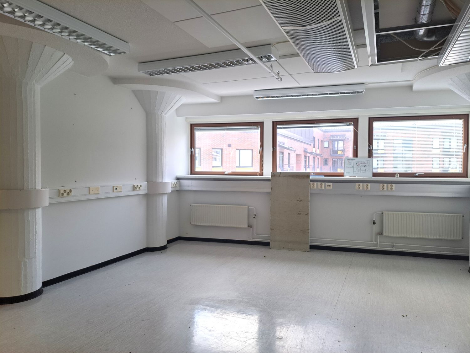Tarjolla toimistohuone Kallaveden Konttuurin 4. kerroksesta. Tila on valmiina käyttöön heti ja sopii monenlaisiin tarpeisiin. Toimisto on valoisa ja siinä on lasi-ikkunaseinä käytävälle.
