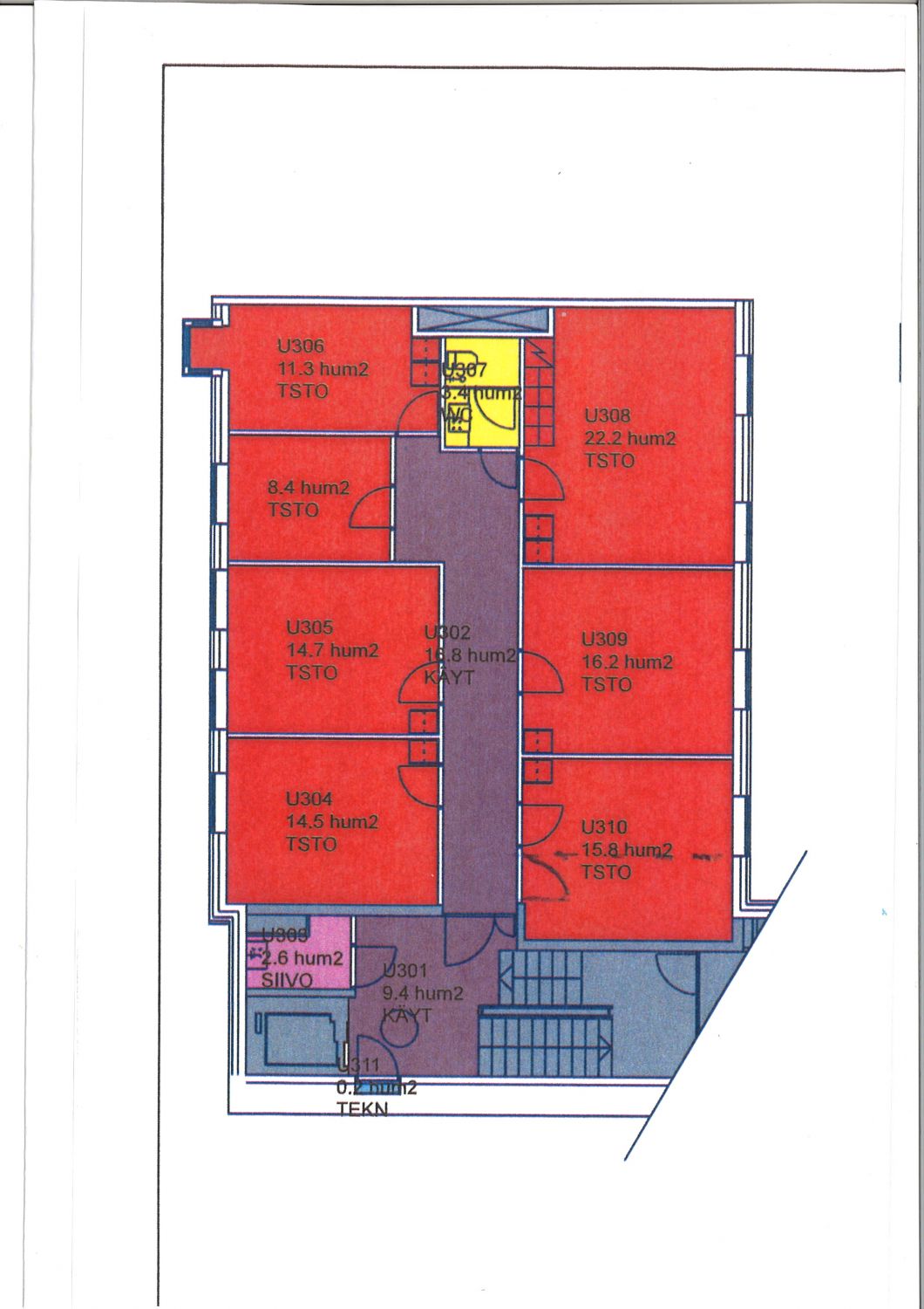 Vuokrattavana Vanhantullinkatu 2, 3. kerroksen toimisto.