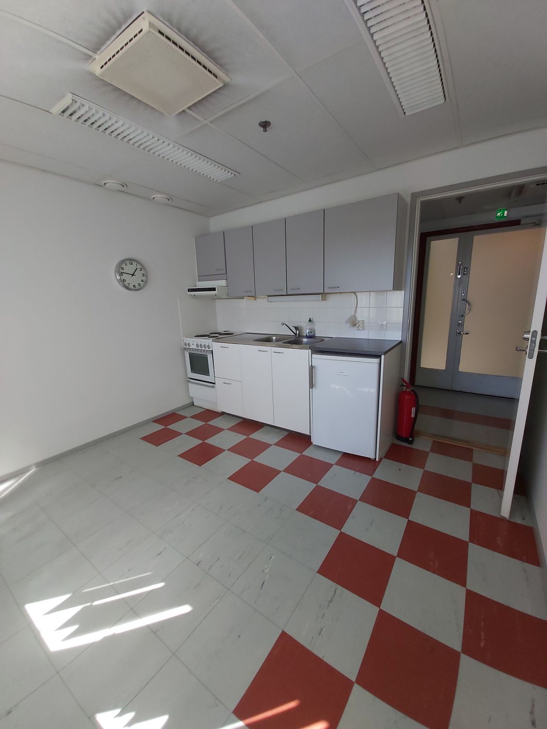 Kerroksessa kaksi vessaa ja keittiö, jotka yhteiskäytössä kaikille kerroksen käyttäjille.