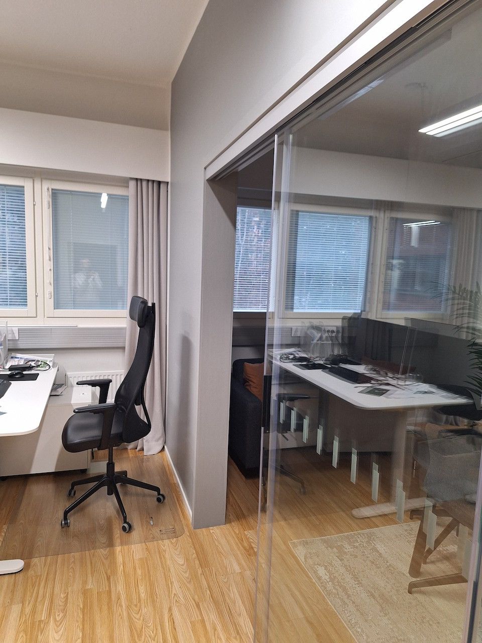 Tilan lähellä samassa kerroksessa on useampi työhuone joita voidaan tarpeen mukaan yhdistää tähän tilaan.