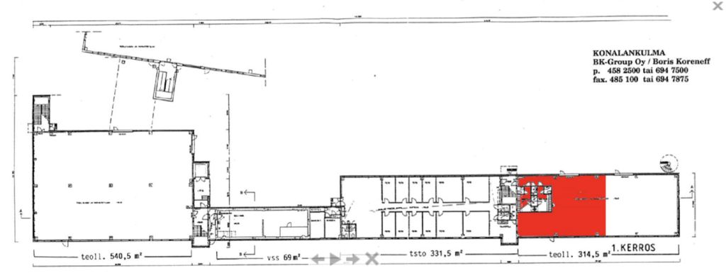 Tämä 130m2 varasto sijaitsee kiinteistön katutasossa ja siinä on oma nosto-ovi. Tilan kanssa vuokrataan kolmannen kerroksen 351m2 toimisto. Kiinteistön tilat ovat arvonlisäverottomia.