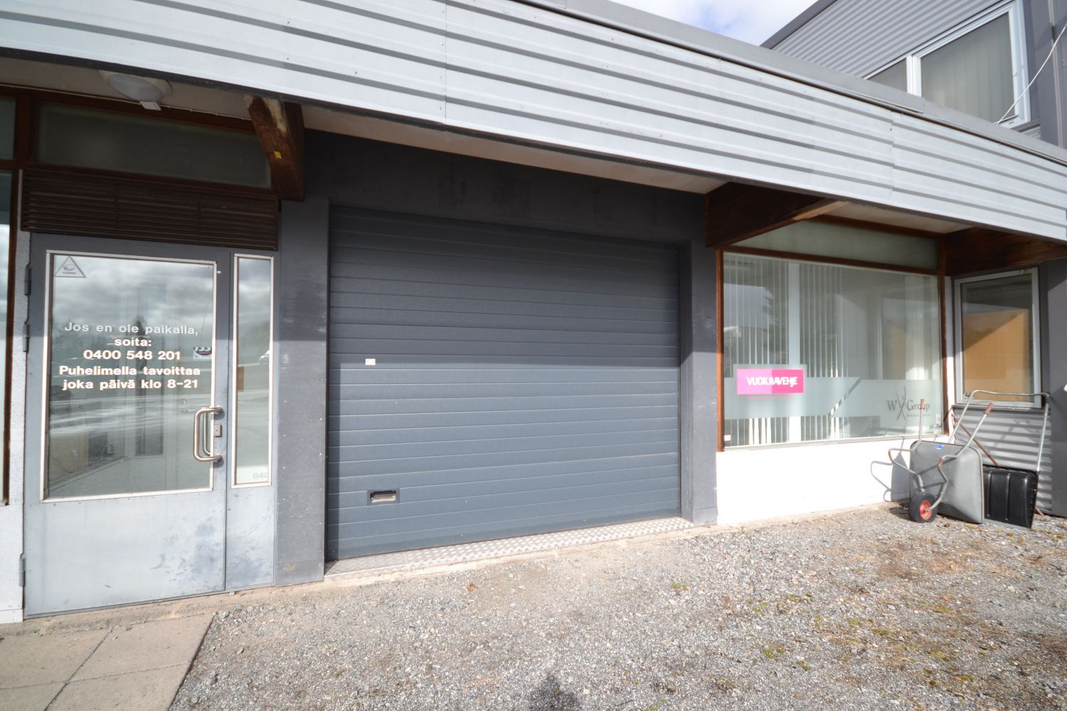 Nosto-ovi ja lisäksi normaali käyntiovi.
